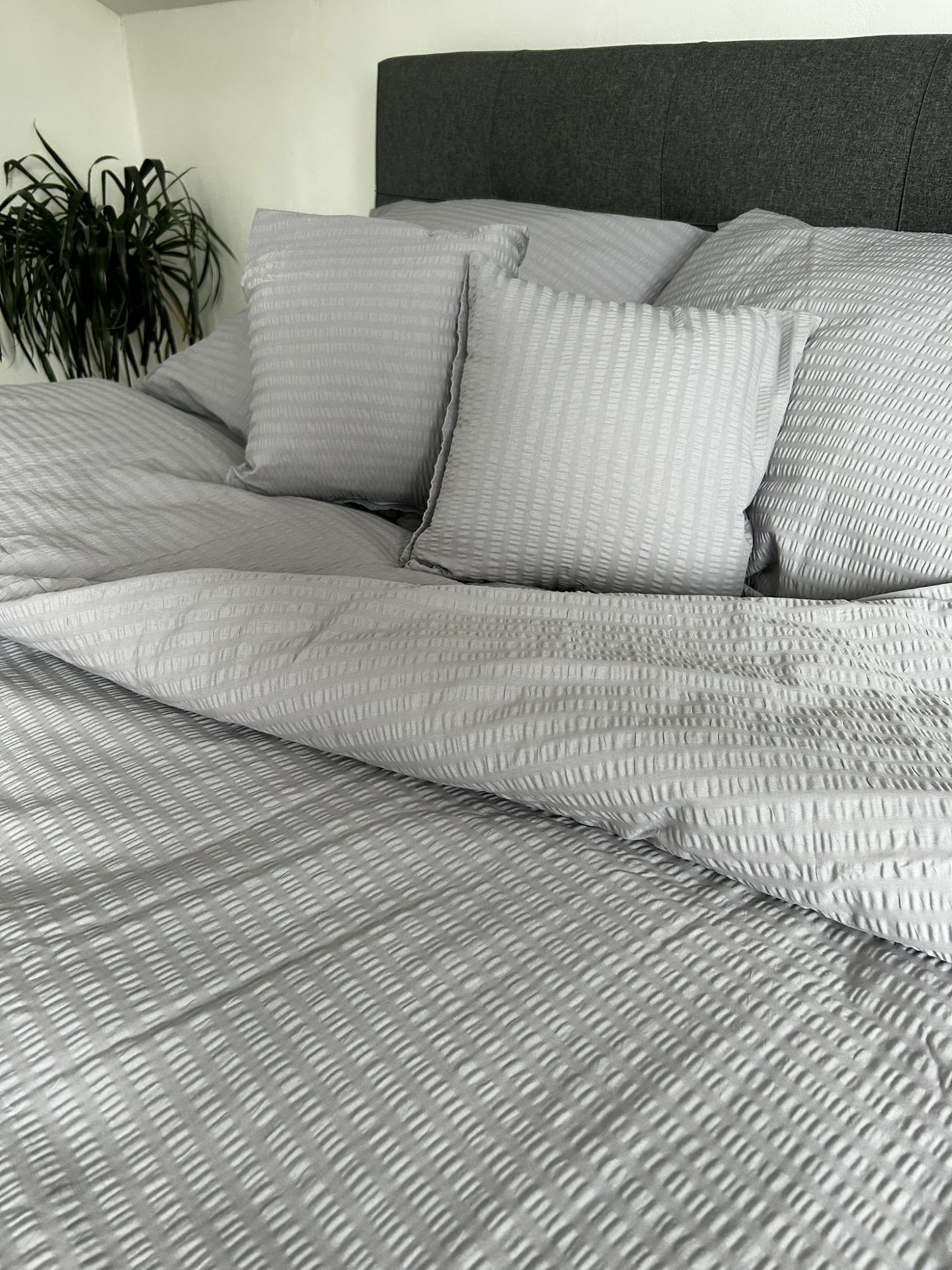 Obliečky krep exclusive UNI sú vyrobené z veľmi jemnej 100% bavlnenej tkaniny. Plošná hmotnosť (gramáž) tkaniny je 135g/m2. Krepovanie je vytvorené pomocou špeciálnej úpravy, veľkosť krepovania je 1cm. Vďaka tomuto krepovaniu sa posteľná bielizeň nemusí žehliť. Tkanina má vysokú hustotu veľmi jemných priadzí a pre tieto svoje vlastnosti je veľmi jemná a príjemná na dotyk. Posteľná bielizeň je vyrobená s rozmerovou rezervou pre zrazenie po vypraní. Použitá tkanina a obliečky sú vyrobené v SR s obľúbeným zipsovým uzáverom.