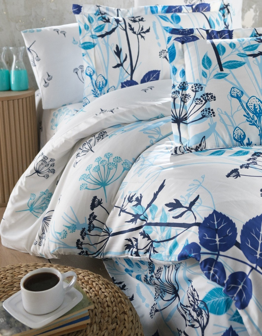 Francúzske obliečky Satén 220x200, 70x90cm Garden blue