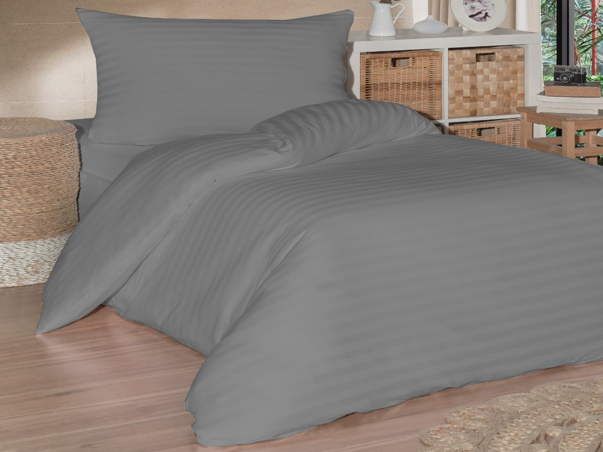 Francúzske obliečky saténový prúžok 220x200, 70x90cm sivé