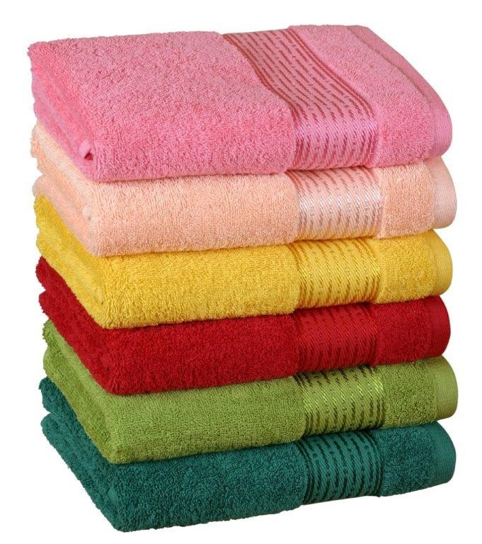 Froté uteráky a osušky s prúžkom sú vyrobené z bavlneného materiálu a vďaka jemným priadzam sú veľmi príjemné na dotyk. Charakteristická je aj vysoká savosť froté materiálu. Každú z farieb môžete skompletovať do farby uteráka aj osušky. Plošná gramáž použitého froté materiálu je 450g/m2.