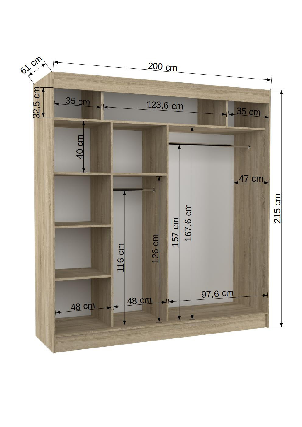 Posuvná skriňa so zrkadlom GILTON 200 Sonoma+Sonoma