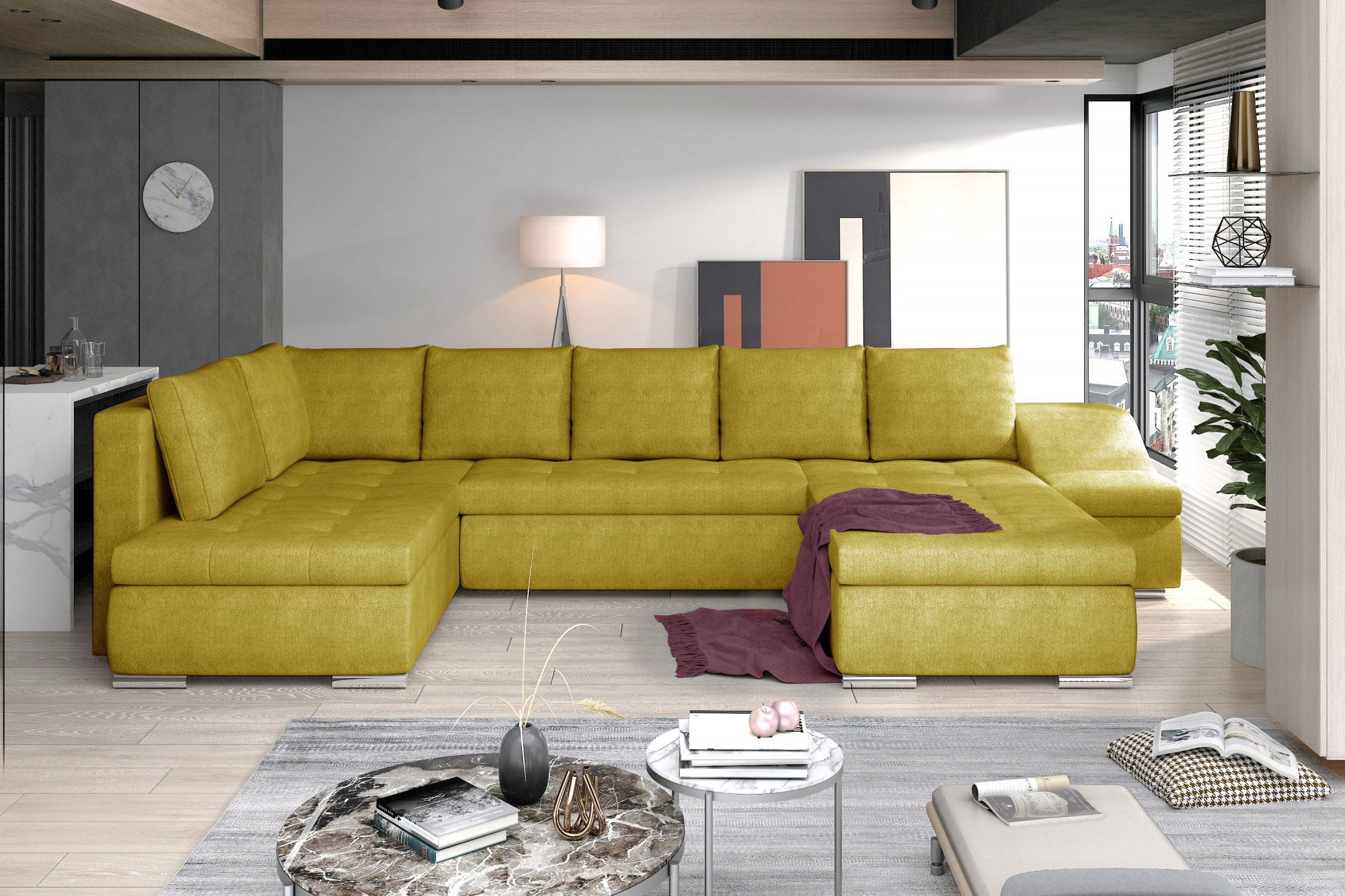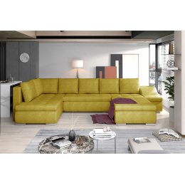 Giovanni je mimoriadne elegantná, priestranná a inovatívna rohová pohovka v tvare U s rozmermi 340 x 200 x 88 cm. Tento nábytok má pohodlné, mäkké sedadlo vyrobené z odolnej vlnitej pružiny a tiež z pružnej peny T30, ktorá je odolná nielen proti poškodeniu, ale aj proti deformáciám a škrabancom všetkých typov. Moderný dizajn v klasickom štýle bol vybavený ďalším bočným prvkom, ktorý slúži ako priestranná opierka rúk, a zároveň môže byť ďalším sedadlom. Naša rohová sedačka je vybavená funkciou spania s rozmermi 295 x 120 cm a tiež úložným priestorom na lôžkoviny. Medzi vlastnosti rohovej pohovky Giovanni môžeme zahrnúť: zaoblené hrany rohovej pohovky, ktoré jej dodávajú eleganciu, strieborné kovové nohy, širokú opierku ruky, vlnité, padajúce dole, štýlové prešívanie na sedákoch, rovnako ako priestranné vankúše. Výberom našej atraktívnej rohovej pohovky, ktorá je nielen vizuálne, ale aj funkčne príťažlivá, si môžete byť istí, že nájdete všetko, čo potrebujete na dosiahnutie maximálnej spokojnosti vyplývajúcej z pohodlia, ktoré ponúkame.