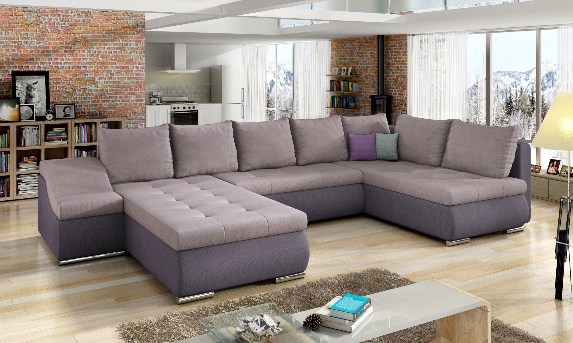 Giovanni je mimoriadne elegantná, priestranná a inovatívna rohová pohovka v tvare U s rozmermi 340 x 200 x 88 cm. Tento nábytok má pohodlné, mäkké sedadlo vyrobené z odolnej vlnitej pružiny a tiež z pružnej peny T30, ktorá je odolná nielen proti poškodeniu, ale aj proti deformáciám a škrabancom všetkých typov. Moderný dizajn v klasickom štýle bol vybavený ďalším bočným prvkom, ktorý slúži ako priestranná opierka rúk, a zároveň môže byť ďalším sedadlom. Naša rohová sedačka je vybavená funkciou spania s rozmermi 295 x 120 cm a tiež úložným priestorom na lôžkoviny. Medzi vlastnosti rohovej pohovky Giovanni môžeme zahrnúť: zaoblené hrany rohovej pohovky, ktoré jej dodávajú eleganciu, strieborné kovové nohy, širokú opierku ruky, vlnité, padajúce dole, štýlové prešívanie na sedákoch, rovnako ako priestranné vankúše. Výberom našej atraktívnej rohovej pohovky, ktorá je nielen vizuálne, ale aj funkčne príťažlivá, si môžete byť istí, že nájdete všetko, čo potrebujete na dosiahnutie maximálnej spokojnosti vyplývajúcej z pohodlia, ktoré ponúkame.