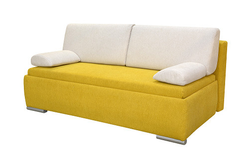 GULIVER LUX (Gordia 160lux- tvarované podrúčky) - rozkladacia pohovka na denné spanie - látková pohovka horčica SS11/ vankúše, podrúčky vanillaSS02, nohy DS strieborné- kolekcia "FN" (K250)