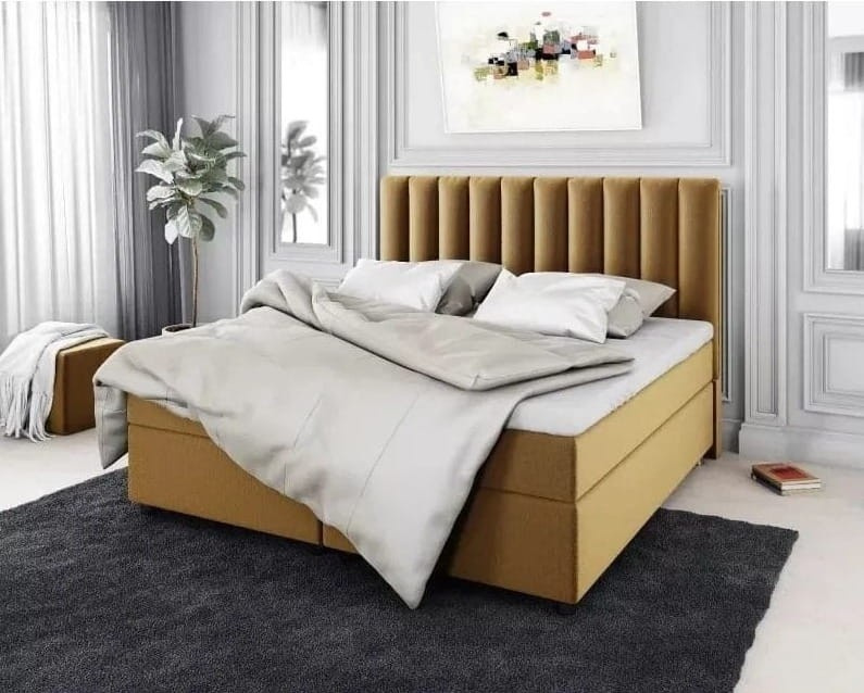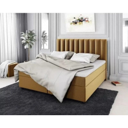 Posteľ „Haga” sa vyznačuje glamour štýlom, čo je zrejmé na jej elegantnom prevedení a ozdobnom čele. Čelo postele je bohato zdobené, s dekoratívnym prešívaním, čo mu dodáva luxusný charakter. Charakteristickým prvkom sú valčeky, ktoré zdobia čelo postele. Dodávajú posteli unikátny a elegantný vzhľad. Posteľ je čalúnená vysoko kvalitnými látkami, ktoré zdôrazňujú jej elegantný vzhľad. Špecifikácia Kontinentálnej Postele Haga Rám vyrobený z dreva Skriňa vyrobená z laminovanej drevotriesky Sada obsahuje základňu postele, čelo a vstavané matrace 2x úložný priestor na posteľnú bielizeň Jednoduchá a intuitívna montáž *Vrchný matrac (topper) nie je súčasťou sady. Odporúča sa zakúpiť vrchný matrac. Rozmery Kontinentálnej Čalúnenej Postele Haga: Šírka – 162 cm Hĺbka – 213 cm Výška – 103 cm Výška k matracu: 38 cm Plocha na spanie: 160x200 cm Kontinentálna Posteľ s Úložným Priestorom Haga - Funkčné Riešenie pre Spálňu Posteľ „Haga“ je vybavená priestrannými úložnými priestormi na posteľnú bielizeň, čo je veľmi praktické riešenie, najmä v menších spálňach. Tieto kontajnery uľahčujú ukladanie posteľnej bielizne, diek a ďalších textílií. Posteľ má vstavané bonellové matrace, ktoré zabezpečujú pohodlný spánok. Bonellové matrace sa vyznačujú pružnosťou a dobrou ventiláciou. Kontinentálna posteľ „Haga” je vynikajúcou voľbou pre tých, ktorí si cenia luxusný vzhľad a pohodlný spánok. Jeho funkčnosť, v podobe úložných priestorov na posteľnú bielizeň a vstavaných matracov, z neho robí praktický a elegantný kus nábytku. V poznámkach k objednávke uveďte, v akej farbe má byť posteľ vyrobená.