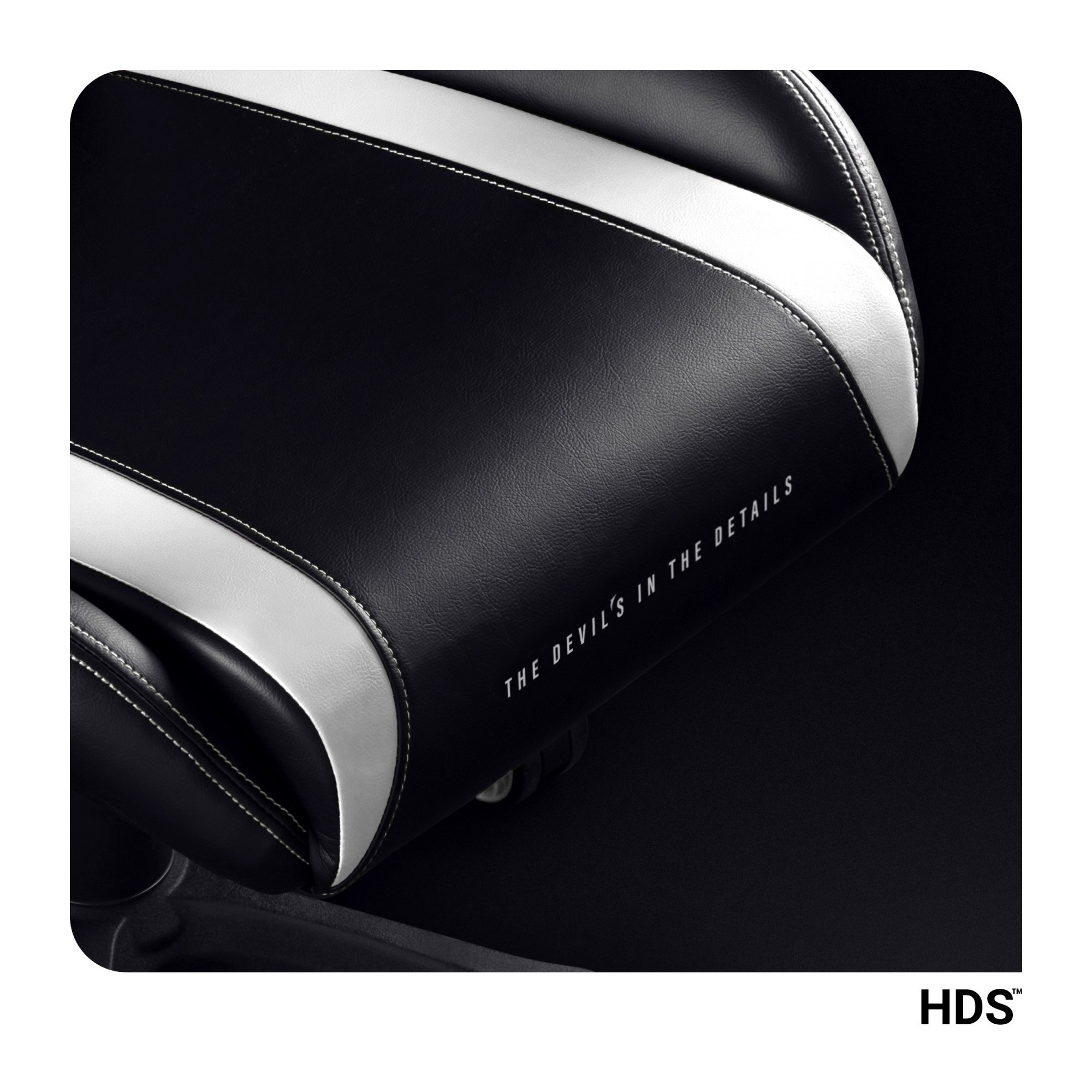 Kombinácia matnej čiernej a snehobielej farby dodáva kreslu X-Horn jedinečný a provokatívny vzhľad. Rohy a vyšívané logo podčiarkujú jeho temnú povahu a zaručujú, že sa stane dominantou každej izby či kancelárie.