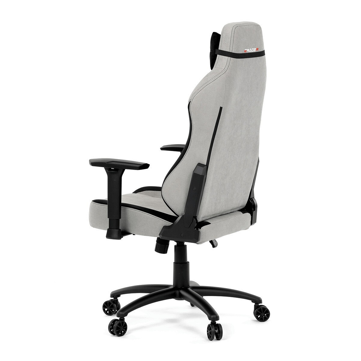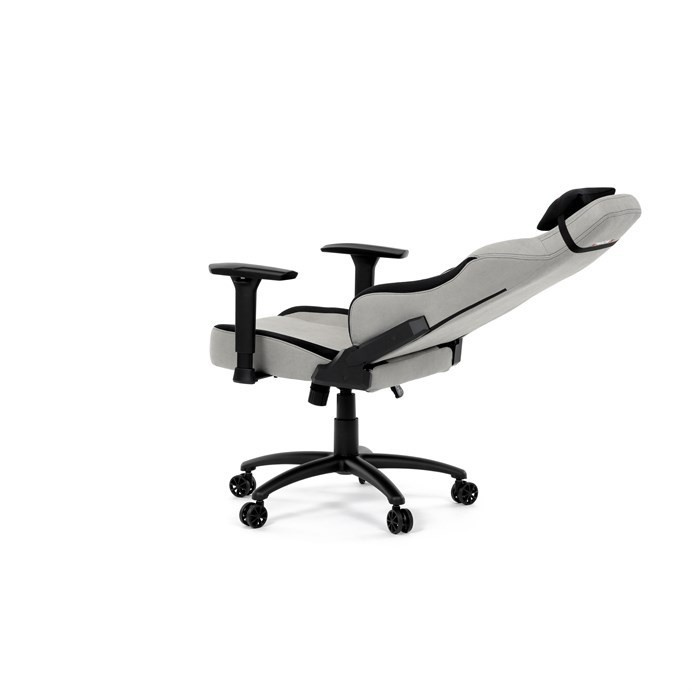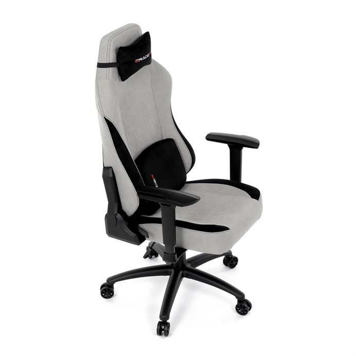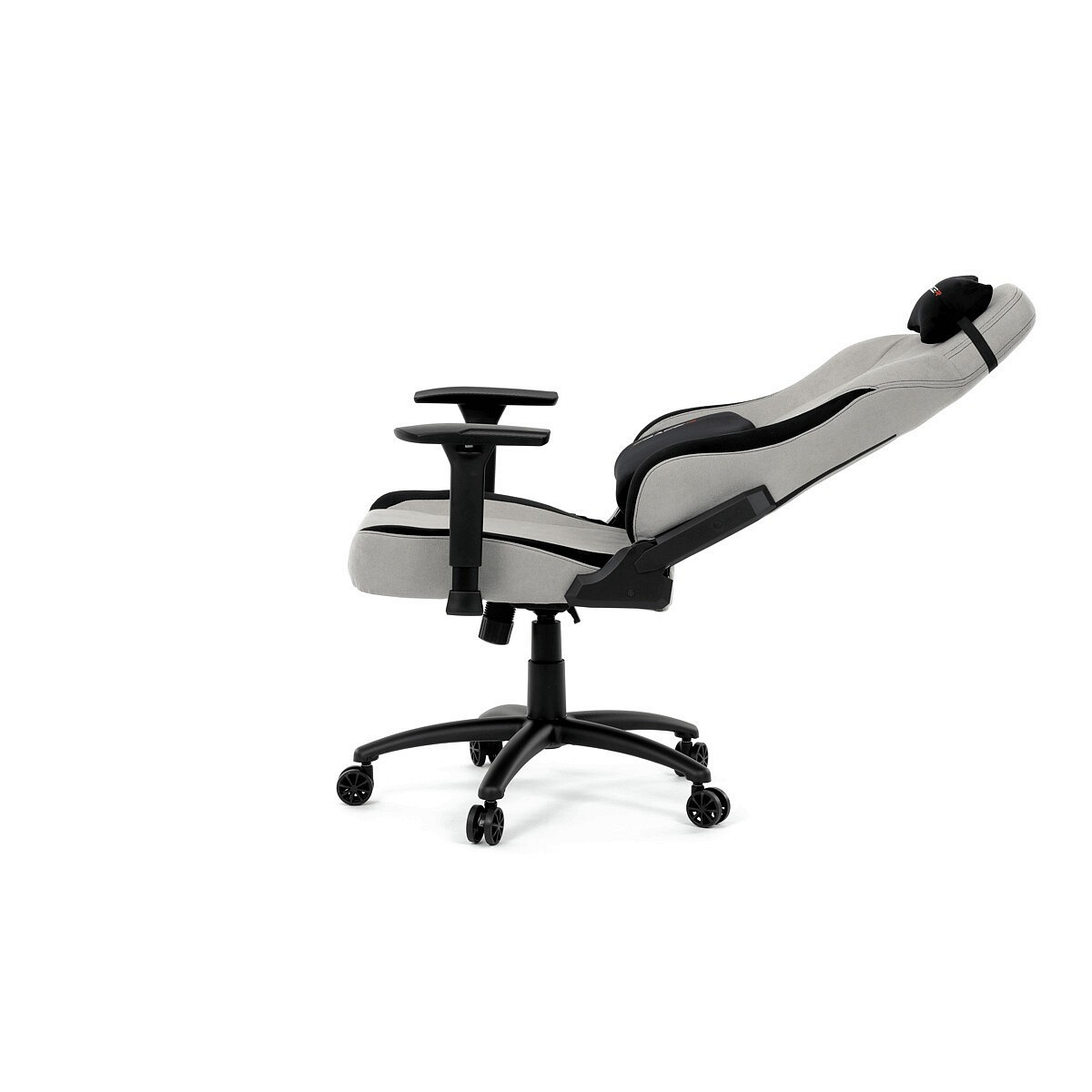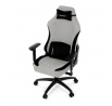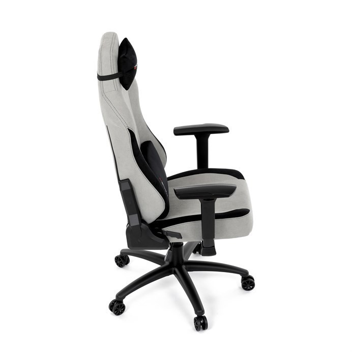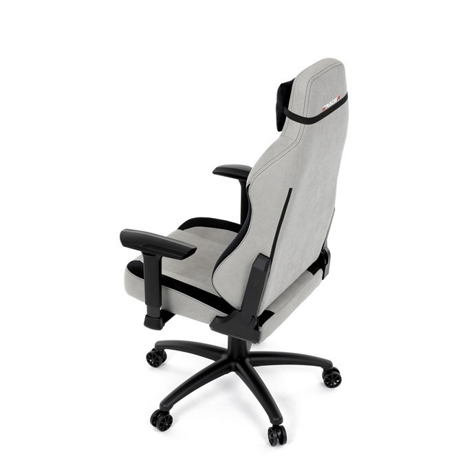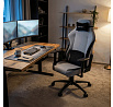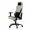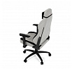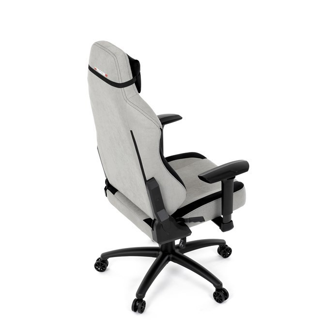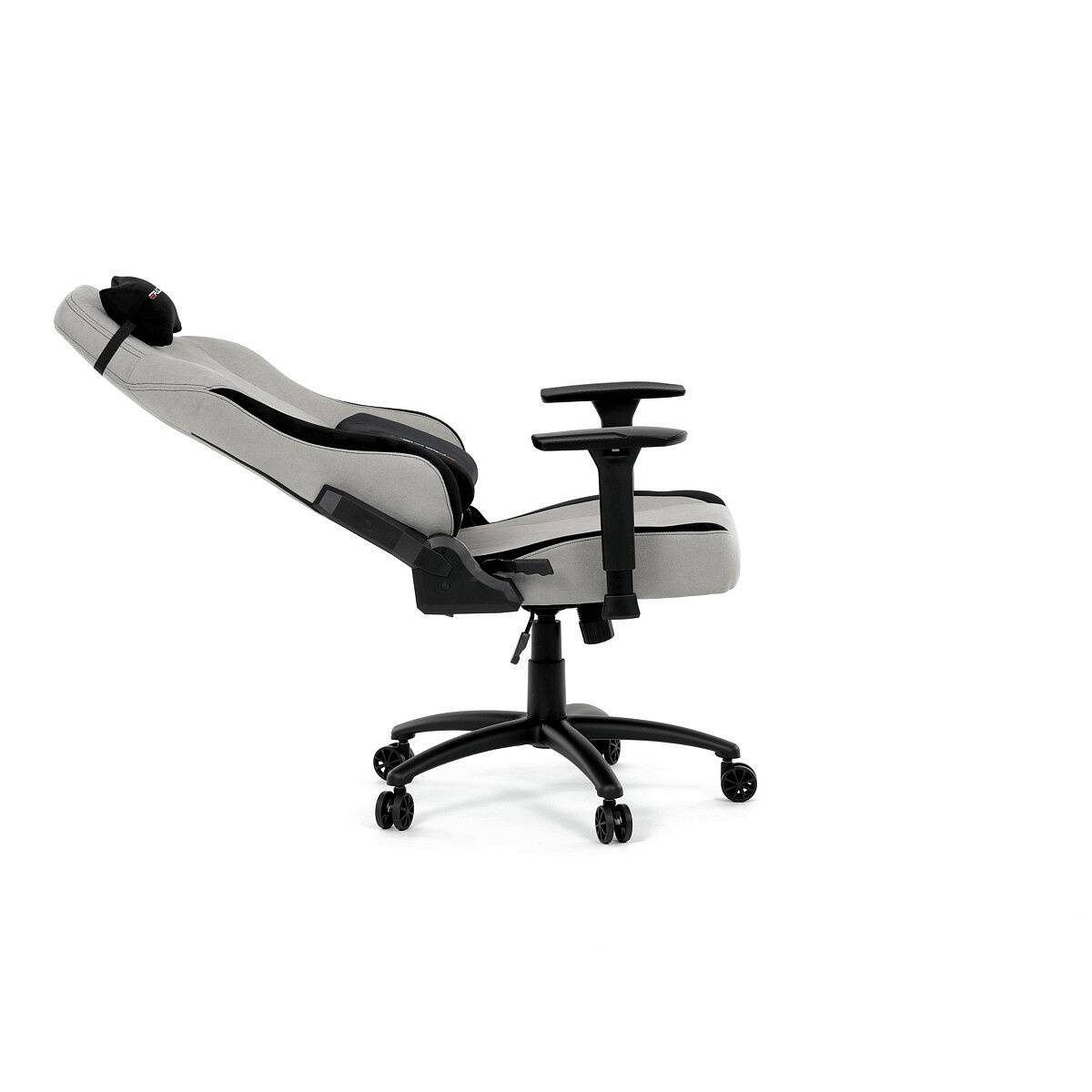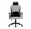 Herná stolička, strieborná látka, hojdací mechanizmus, polohovanie operadla 90°-180°, 3D podrúčky, vankúše z pamäťovej peny,