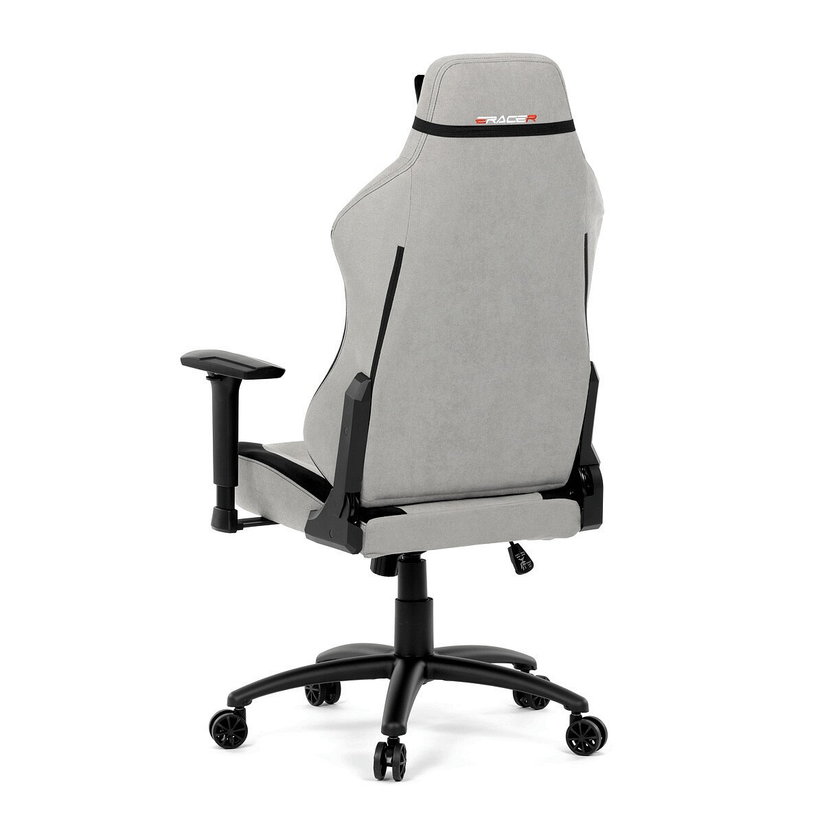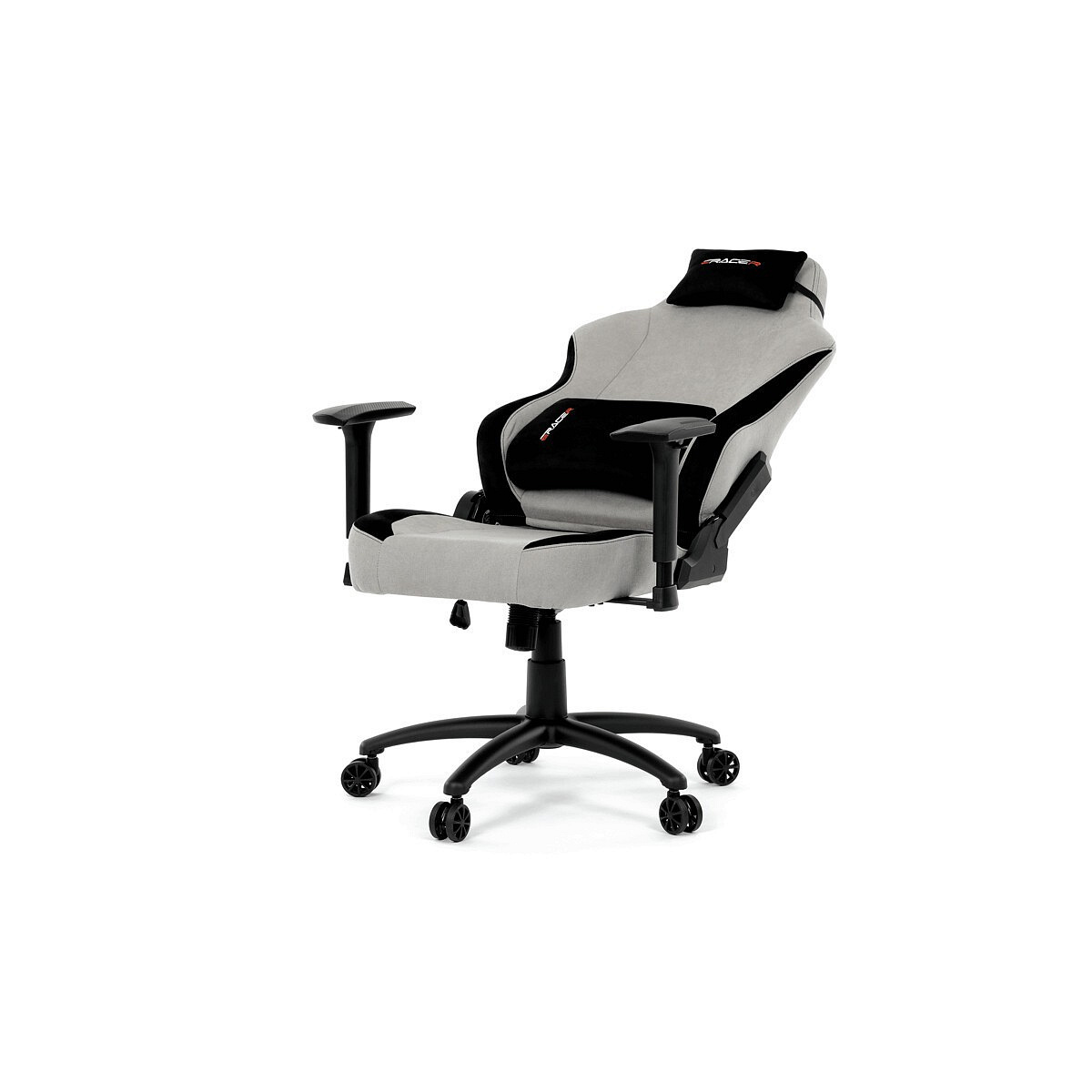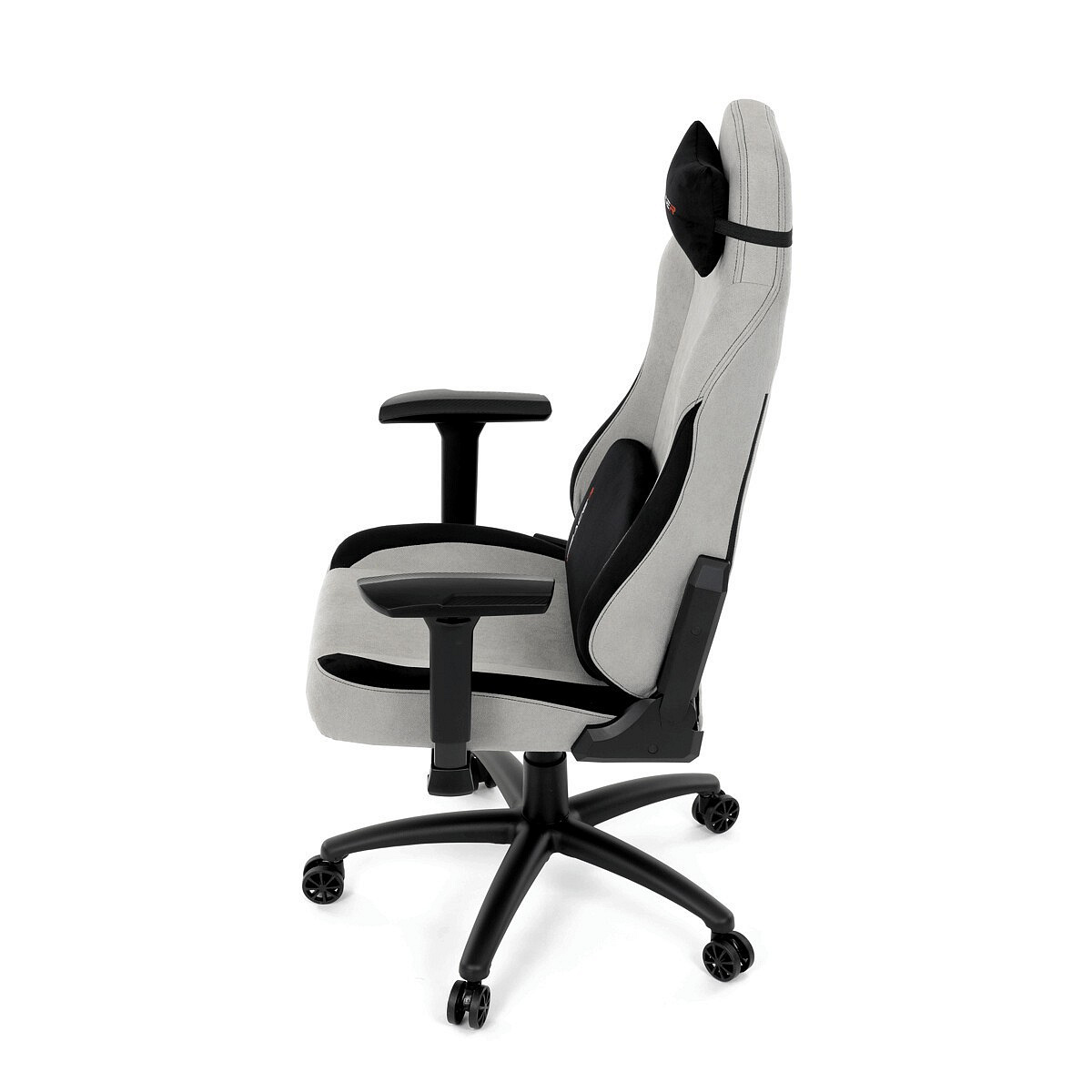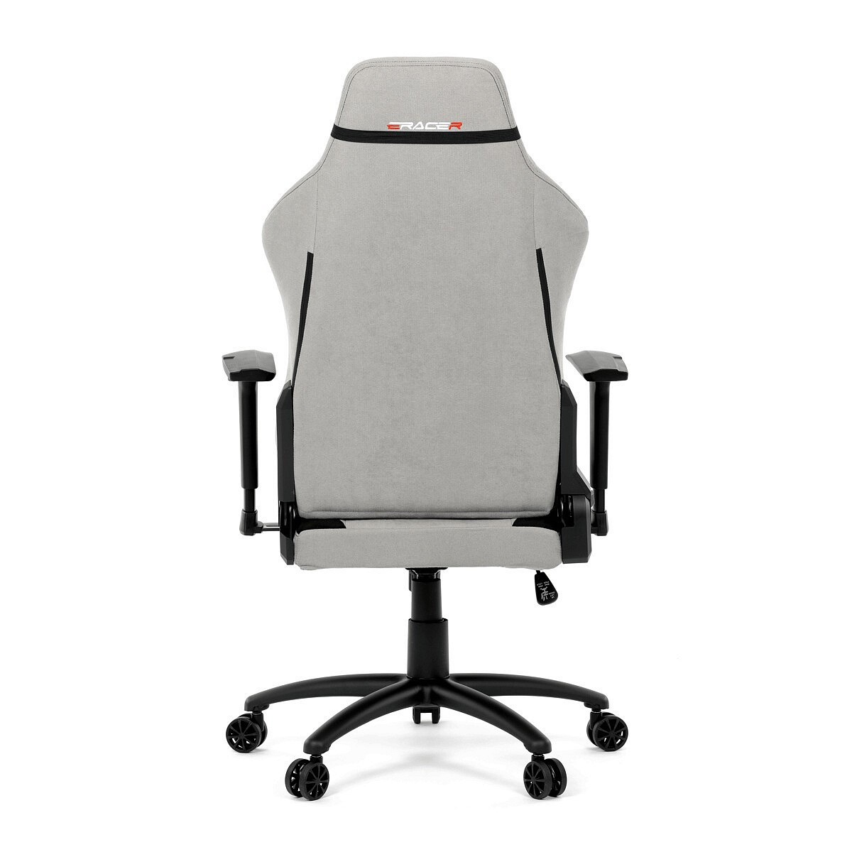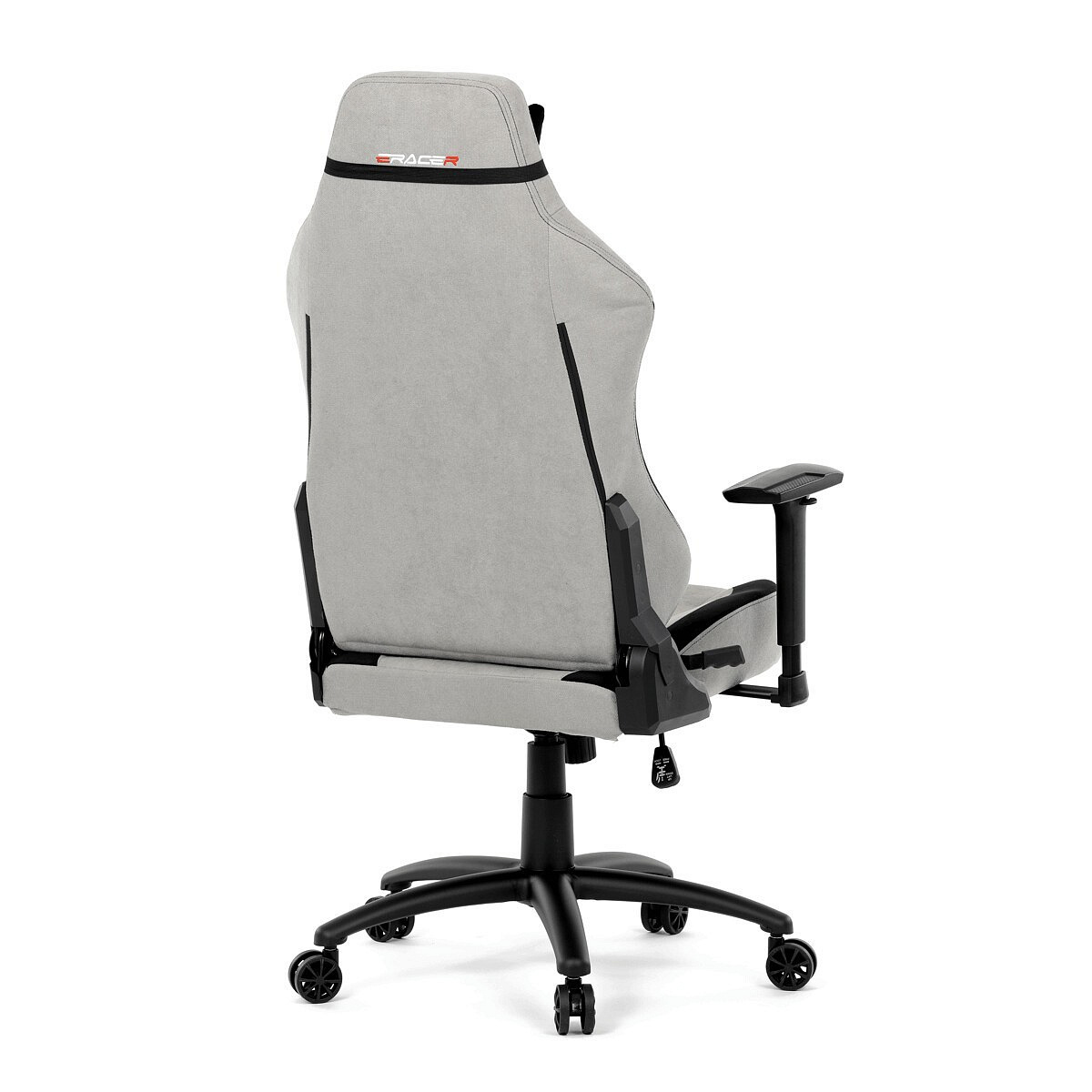 Herná stolička, strieborná látka, hojdací mechanizmus, polohovanie operadla 90°-180°, 3D podrúčky, vankúše z pamäťovej peny,
