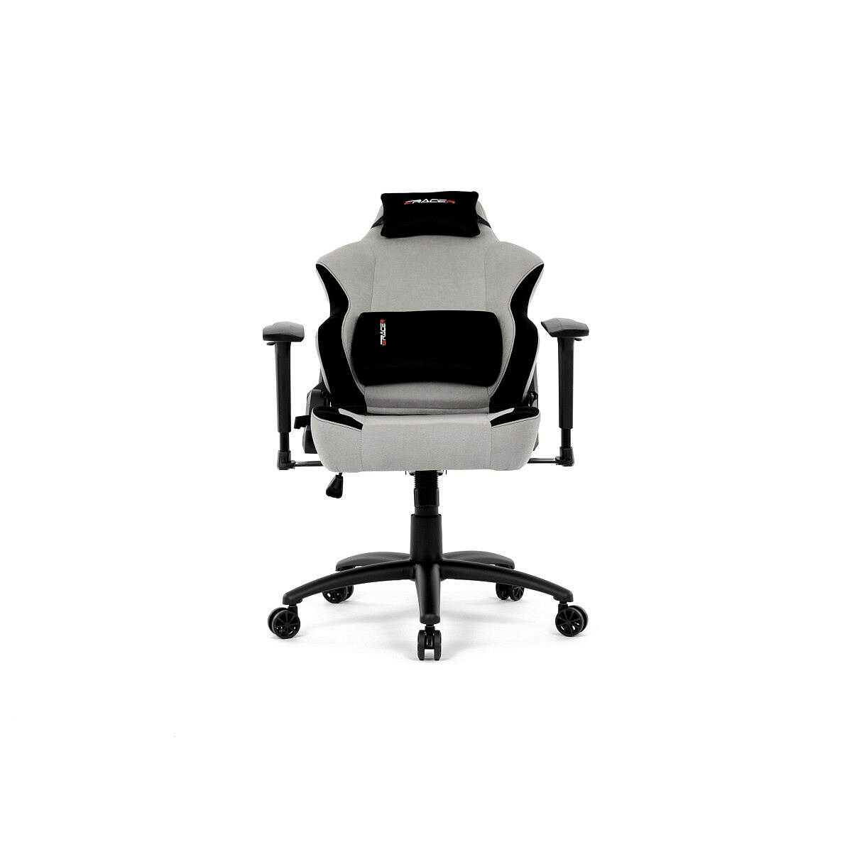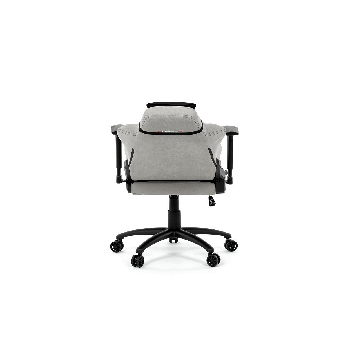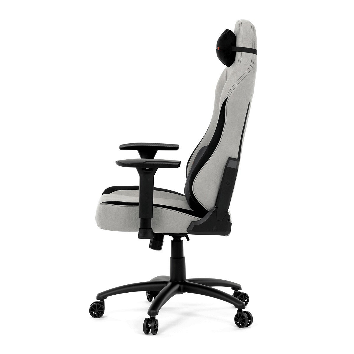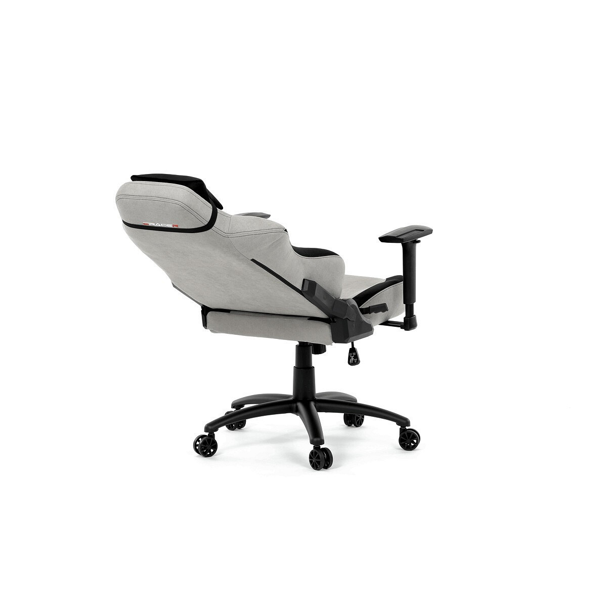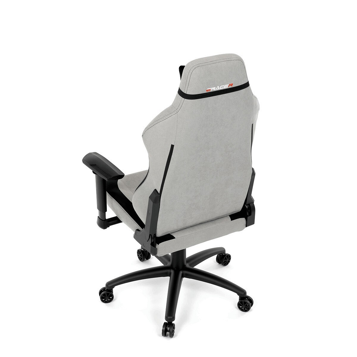 Herná stolička, strieborná látka, hojdací mechanizmus, polohovanie operadla 90°-180°, 3D podrúčky, vankúše z pamäťovej peny,
