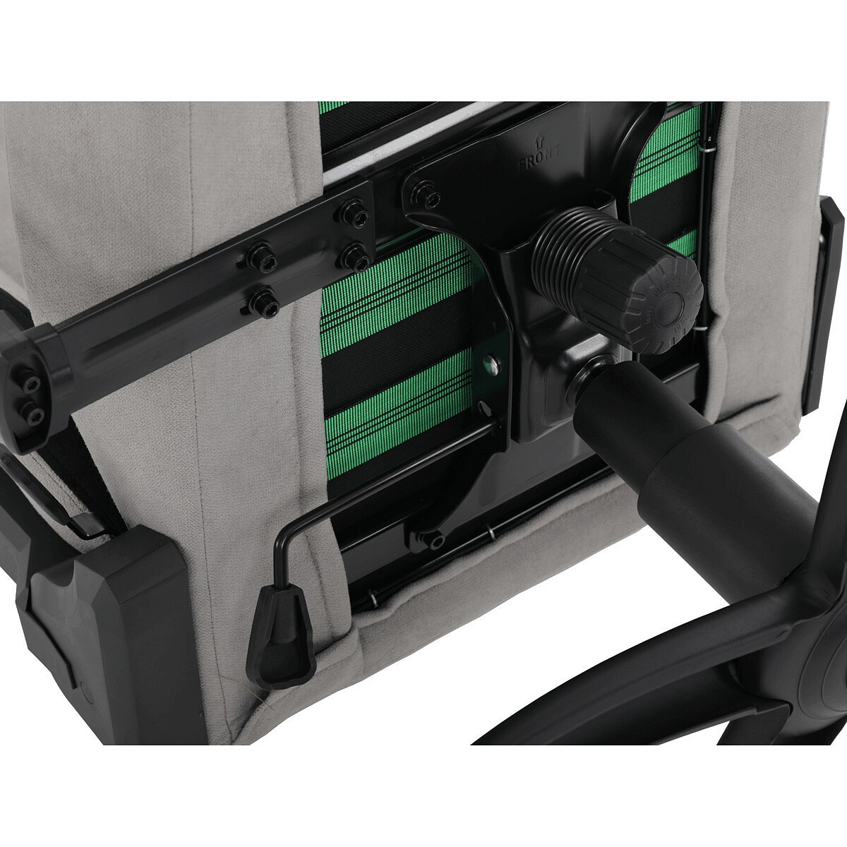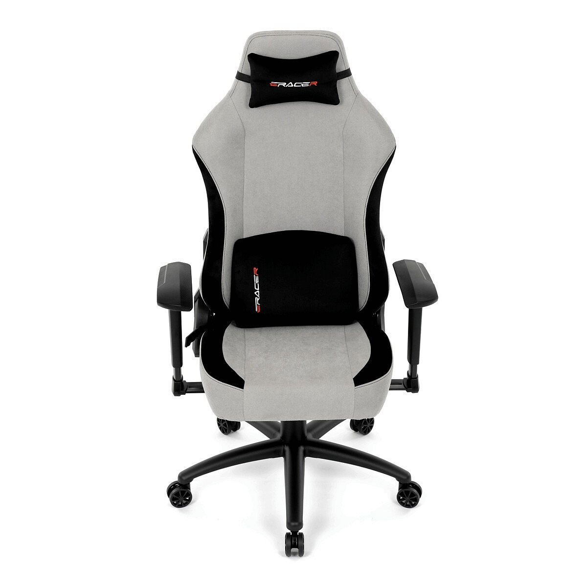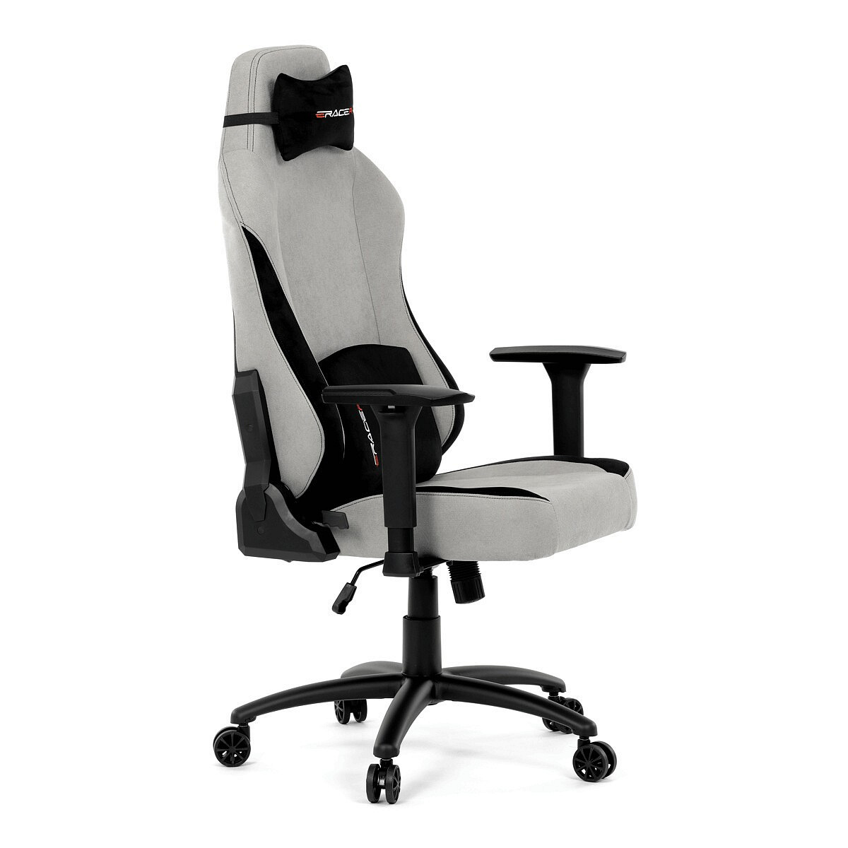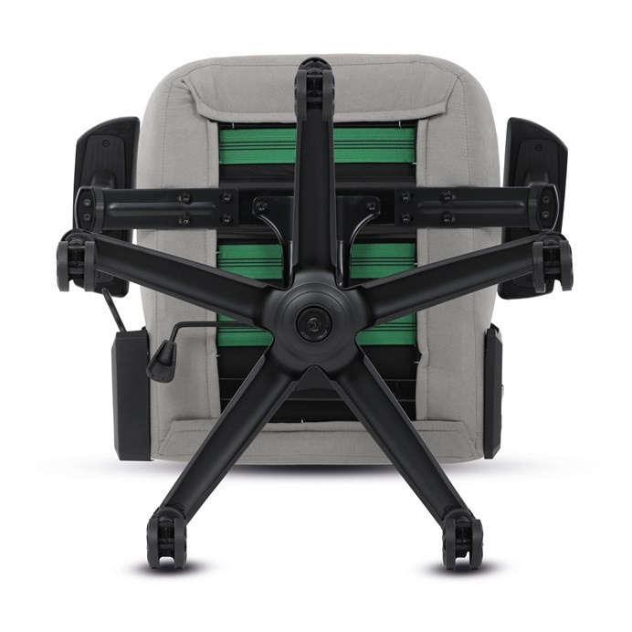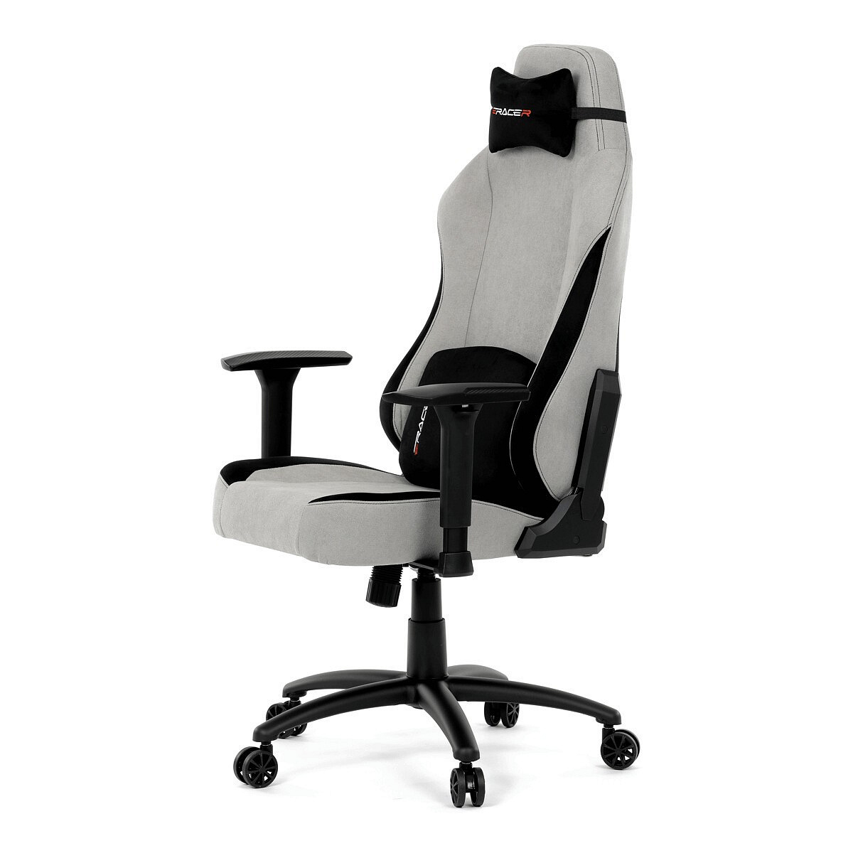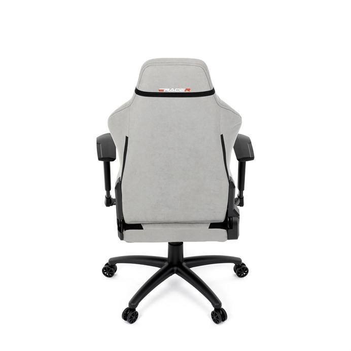 Herná stolička, strieborná látka, hojdací mechanizmus, polohovanie operadla 90°-180°, 3D podrúčky, vankúše z pamäťovej peny,