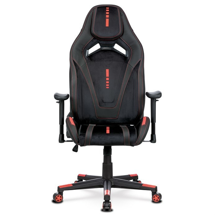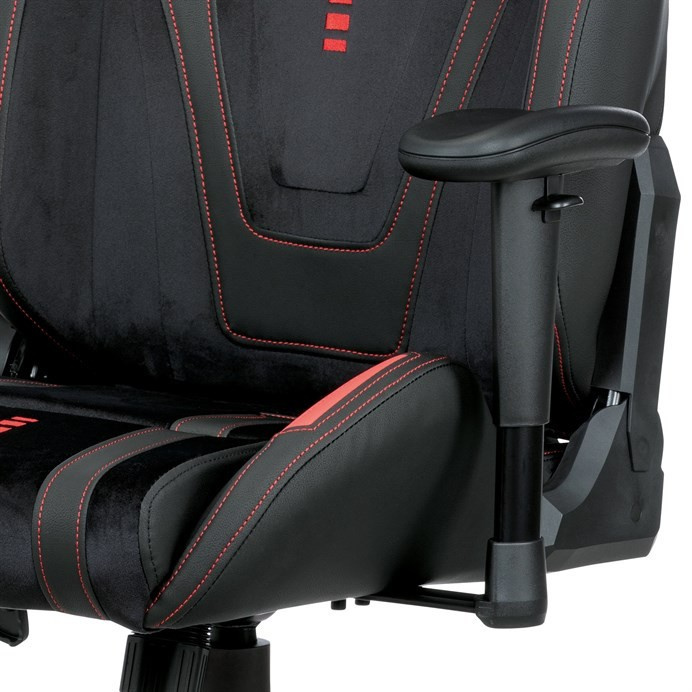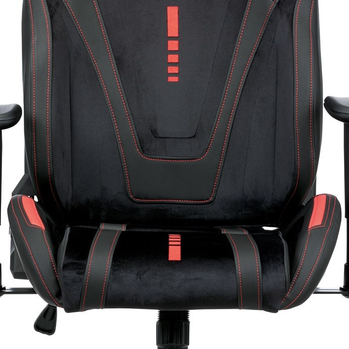 Herné kreslo ERACER, čierna zamatová látka a ekokoža, hojdací mechanizmus, operadlo