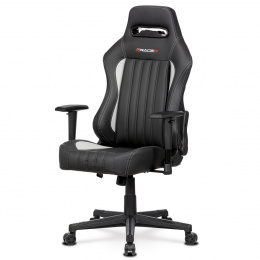 Herné kreslo E-RACER, sivé a čierne čalúnenie z ekokože, HM, operadlo 90°-180°