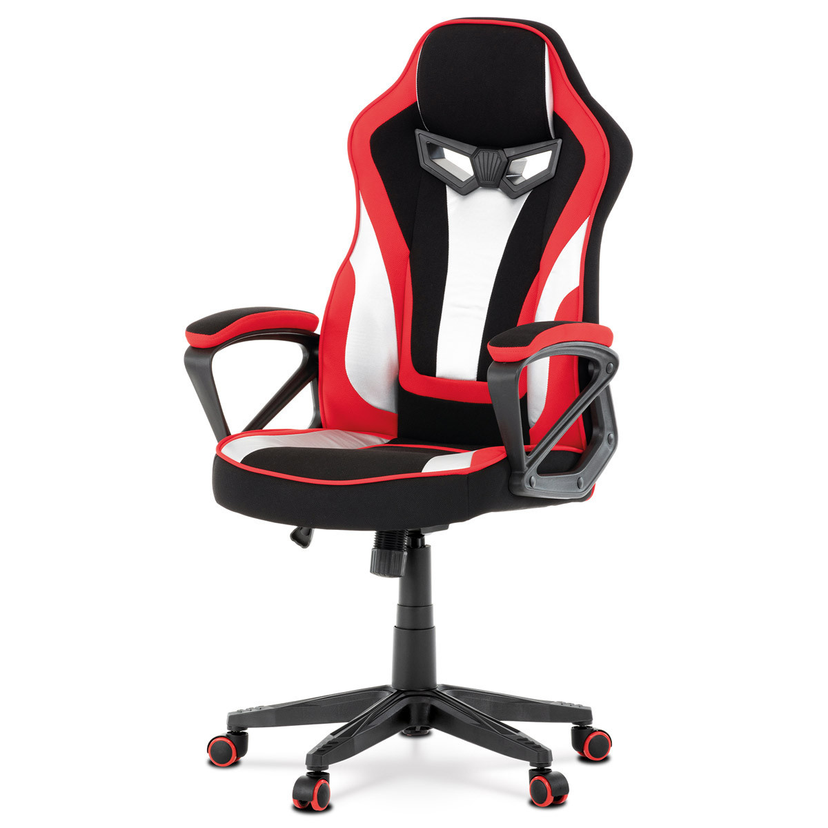 Elegantné herné kreslo v dizajne sedadla pretekárskeho auta vo farebnom pretekárskom štýle so zaoblenými líniami v ostrom kontraste s ostro rezanými prvkami plastového obloženia otvorov na "bezpečnostné pásy". V strede sú spojené výrazným prvkom v štylizovanom tvare mušle. Tieto konštrukčné otvory v hornej časti operadla nielenže dodávajú potrebný pretekársky vzhľad, ale uľahčujú aj manipuláciu. Čalúnenie je kombináciou tradičnej červenej a čiernej látky, ktorú dopĺňajú väčšie prvky zo striebornej ekokože. Obvodové šitie je vo farbách konkrétnych tkanín, t. j. červená a čierna. Výplň je vyrobená z vysoko kvalitnej PU peny. Stolička je vybavená hojdacím mechanizmom s nastavením protiváhy a aretáciou v základnej polohe. Tuhosť protiváhy možno nastaviť veľkou plastovou skrutkou umiestnenou pod sedadlom. Výška sedenia sa nastavuje pomocou páčky na pravej strane prostredníctvom kvalitného plynového piestu. Na čalúnených podrúčkach, na čiernej čalúnenej ploche na spanie a na červenej látke po obvode si môžete pohodlne odpočinúť od celodennej hry alebo práce. Šírka podrúčok je 8 cm, ložná plocha 37 cm a výška 3 cm. Operadlo je vyššie a má integrovanú statickú opierku hlavy. Kríž je z čierneho plastu s priemerom 64 cm, čo zaručuje vynikajúcu stabilitu aj pri fyzicky náročných hrách. Konce ramien kríža majú výrazný protišmykový povrch čiernej farby. Kolesá sú plastové pr. 5 cm s červenou obvodovou gumou, vhodné na tvrdé podlahy. Nosnosť stoličky je až 120 kg. Toto kreslo nesklame a zaručí pohodlie a pohodu pri akejkoľvek činnosti, pri ktorej je potrebné, a vďaka svojej výraznej farbe bude stále neprehliadnuteľným prvkom v interiéri.