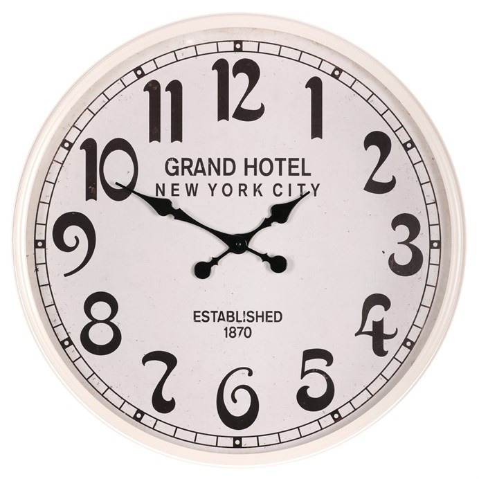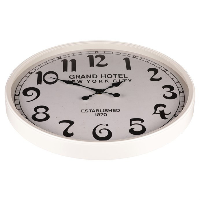 Hodiny nástěnné - pr. 60 cm, kov s patinou, bílé, grand hotel