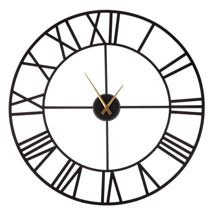 Hodiny nástěnné - pr. 65 cm, kov, římské číslice, černá barva