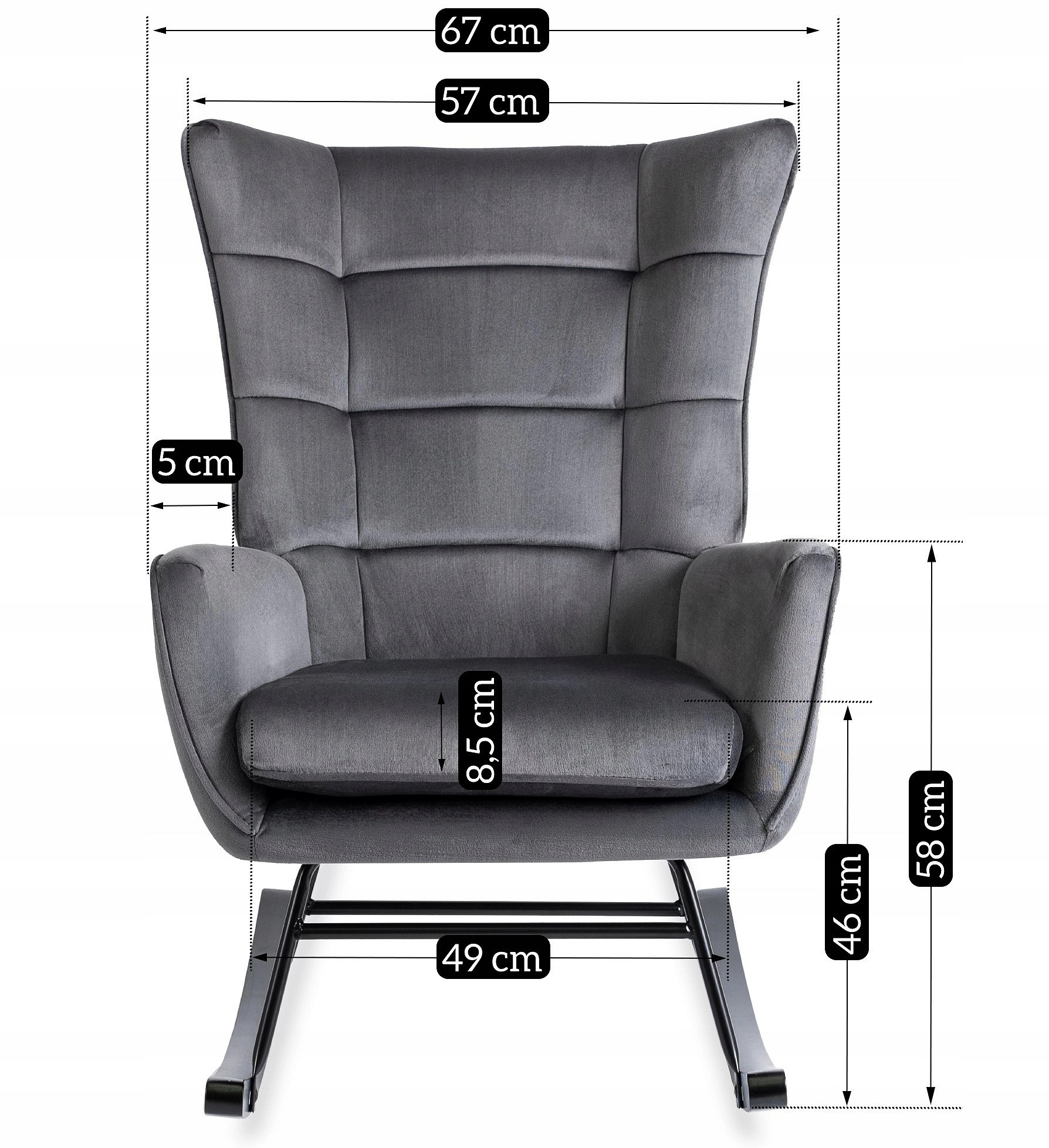 Hojdacie kreslo JACKSON Sivý Zamatový