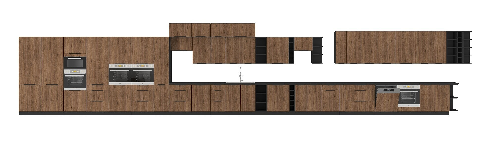- Kuchyňa MONZA - Čierna/Orech Okapi