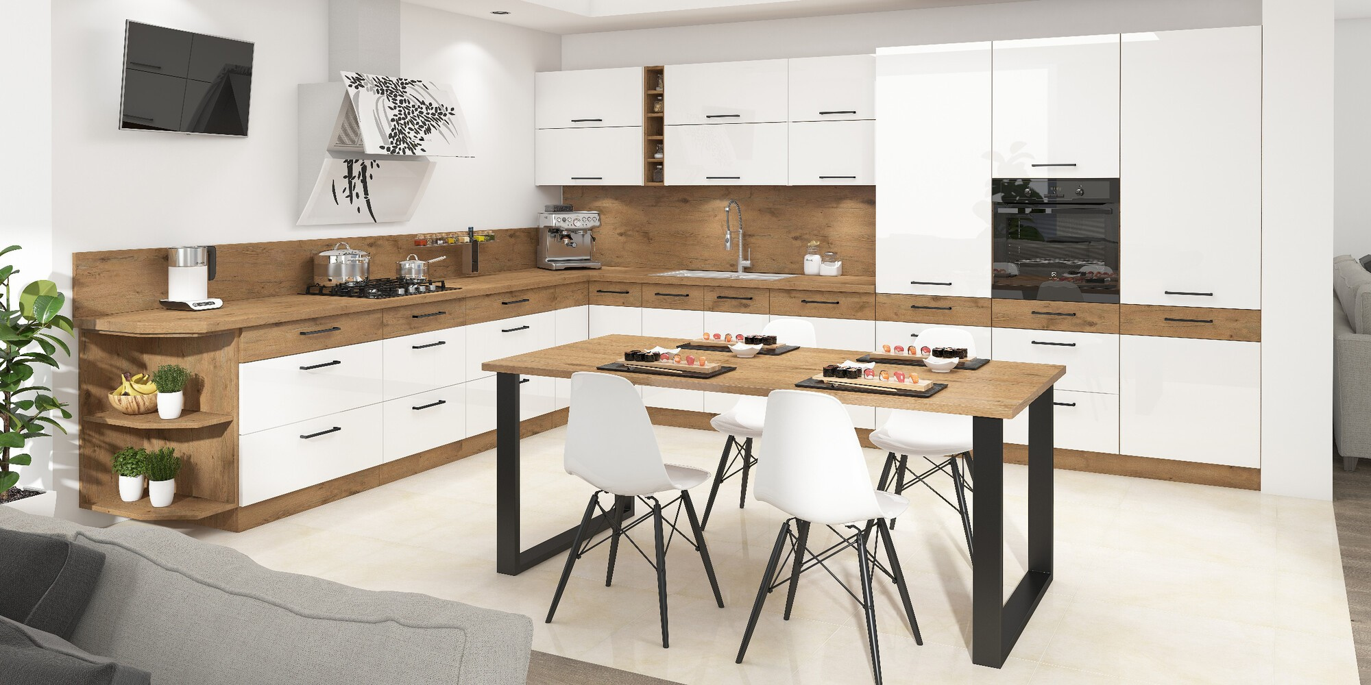- Kuchyňa ROYAL - Biela/Borovica nordická