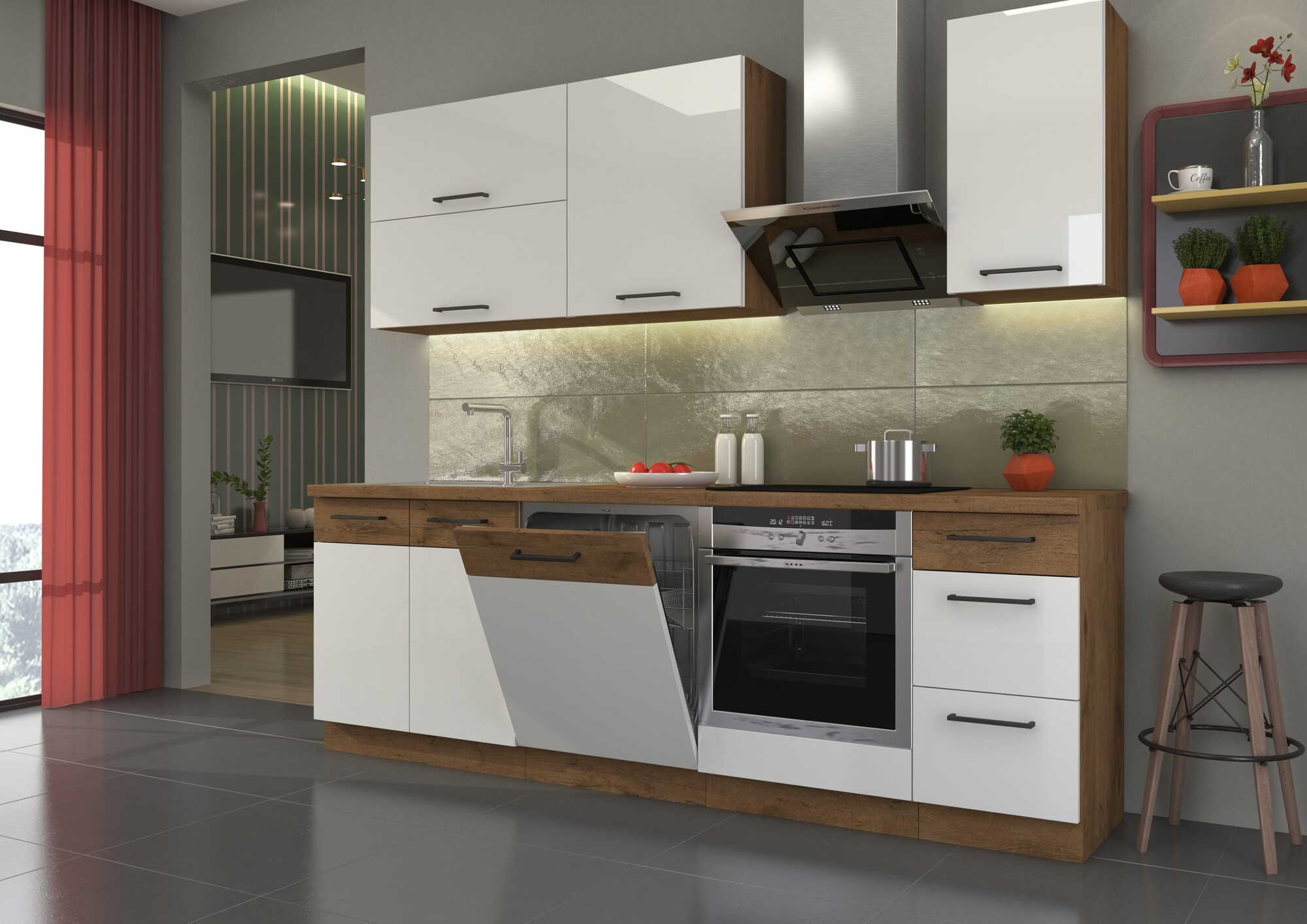 - Kuchyně VEGAS - Dub Lancelot / Bílý Lesk