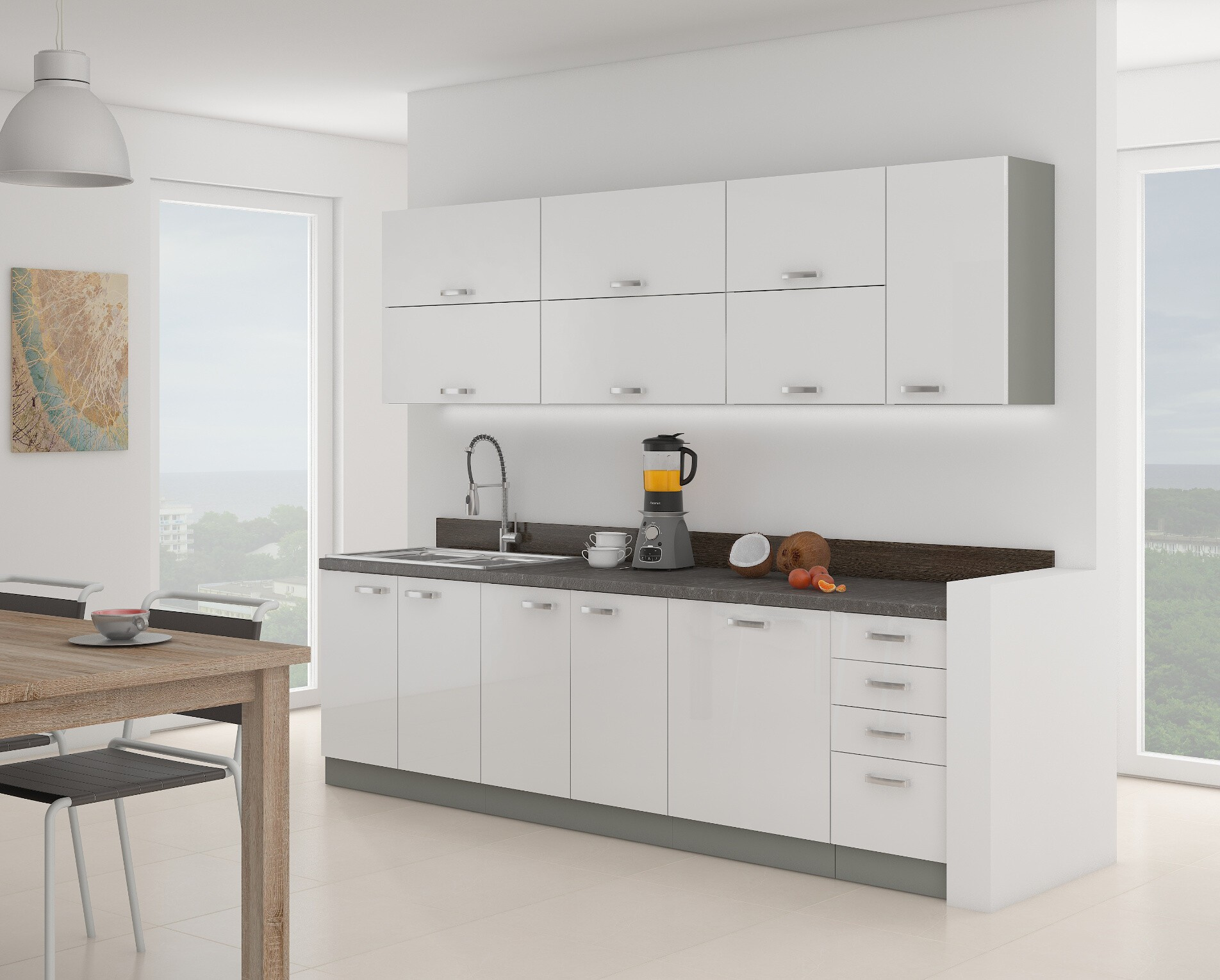- Kuchyňa ASPEN - Biela/Šedý Lesk