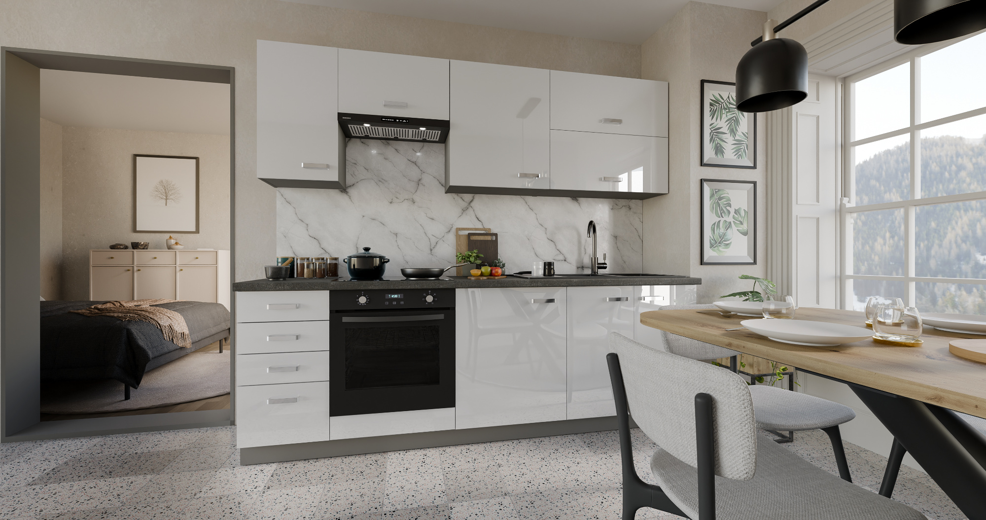 - Kuchyňa ASPEN - Biela/Šedý Lesk