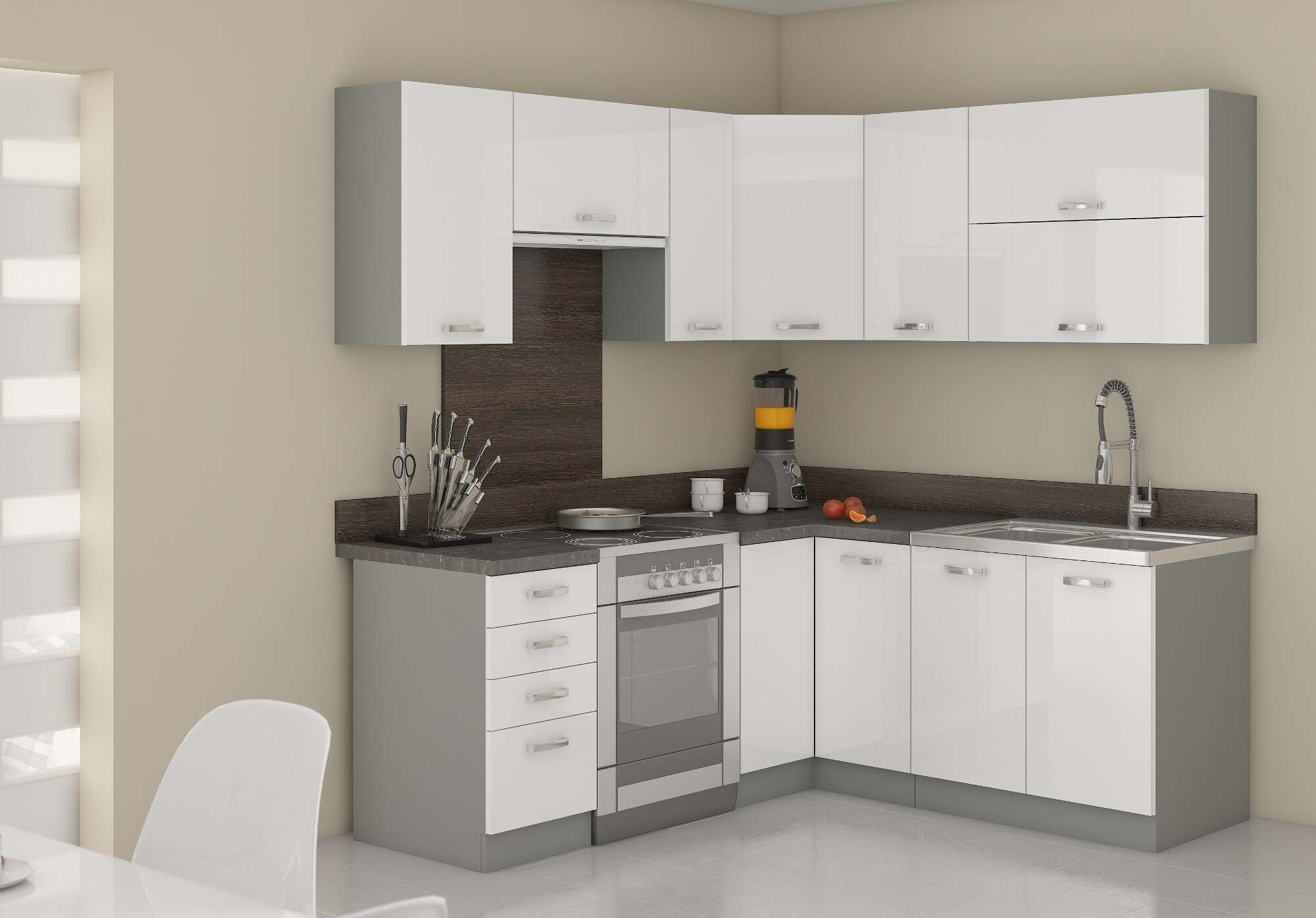 - Kuchyňa ASPEN - Biela/Šedý Lesk