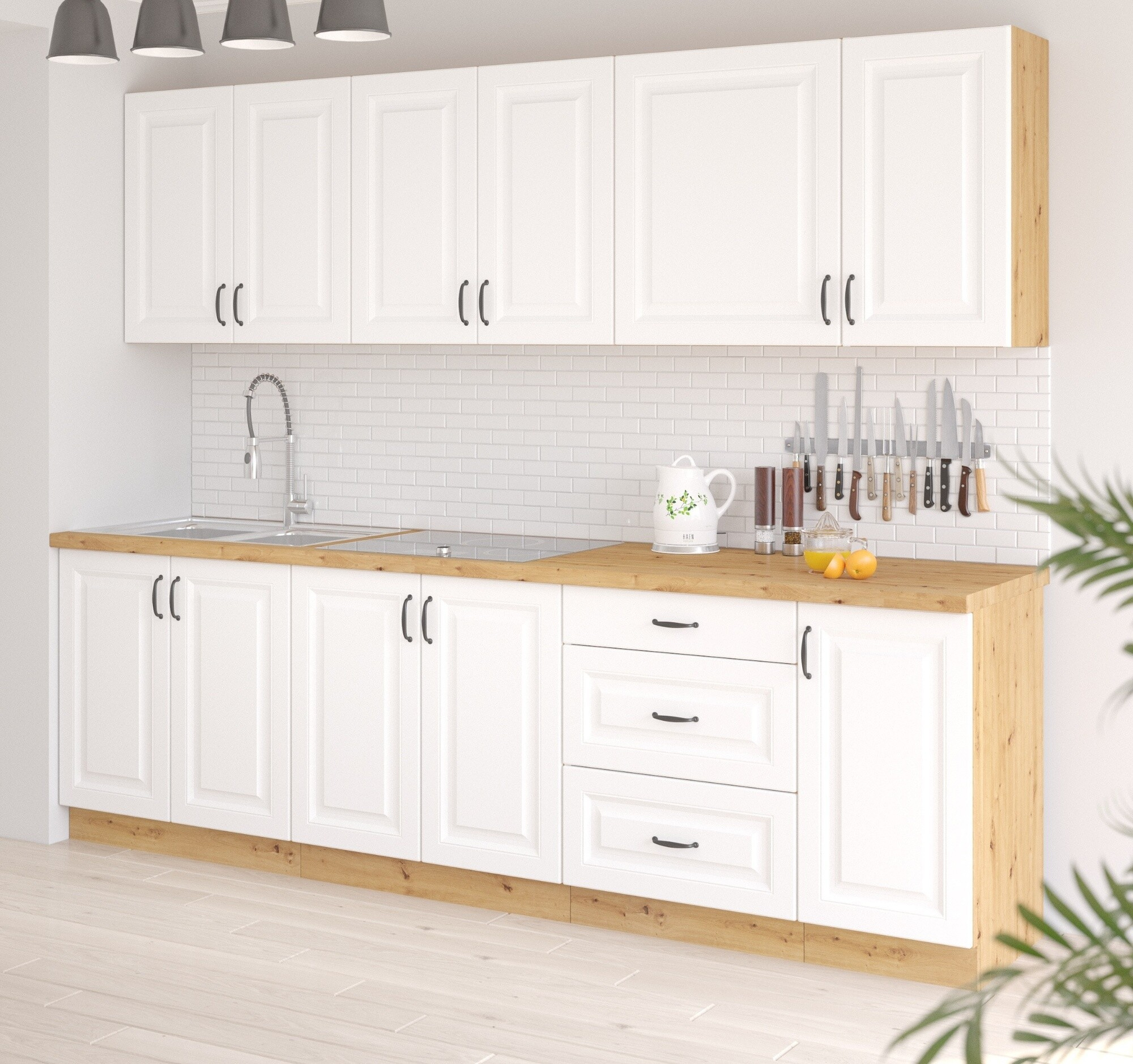 - Kuchyňa PROVENCE - Biela/Borovica Andersen