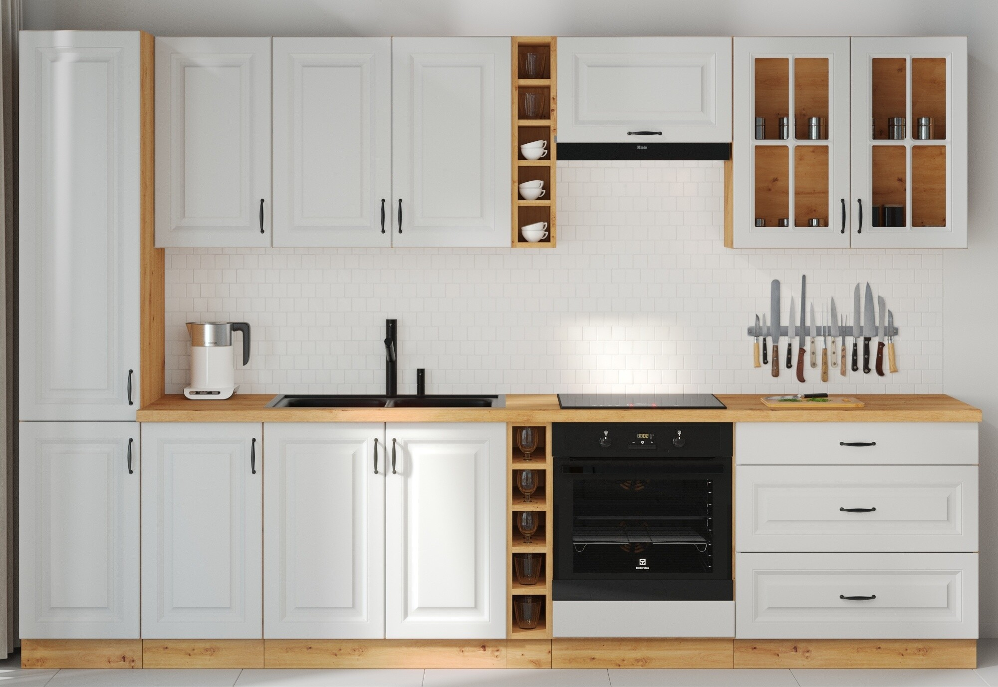 - Kuchyňa PROVENCE - Biela/Borovica Andersen