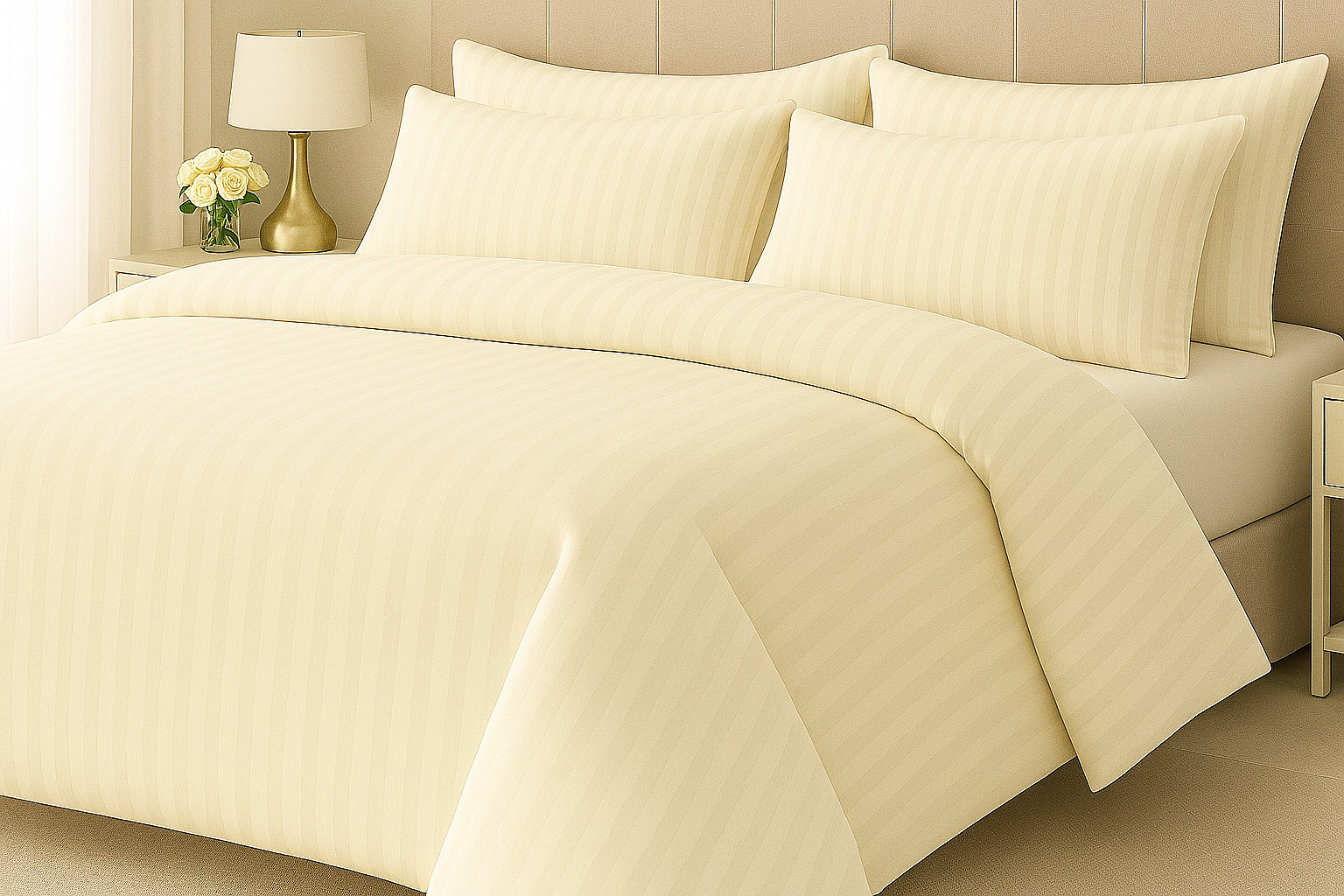 Hotelová posteľná bielizeň 140x220, 70x90cm Atlas gradl smotanový - česaný 145g/m2, prúžok 2cm hotelový uzáver