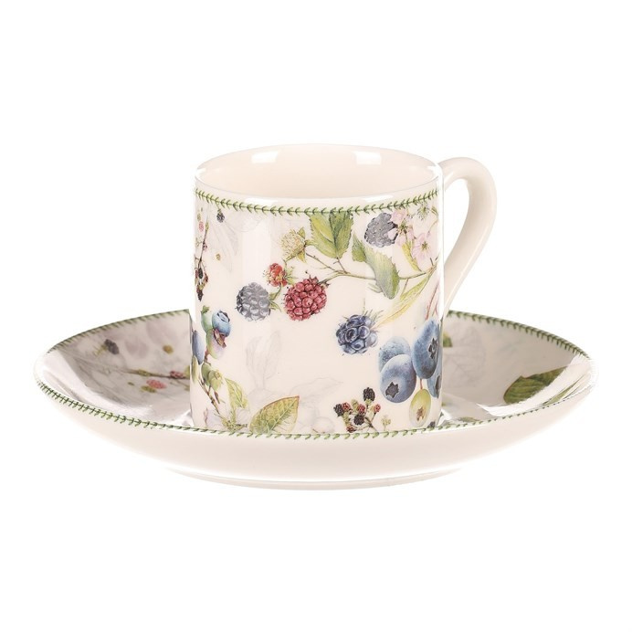 Hrneček s podšálky po 2 kusech - dárkový set, porcelán, bílý s lesními plody