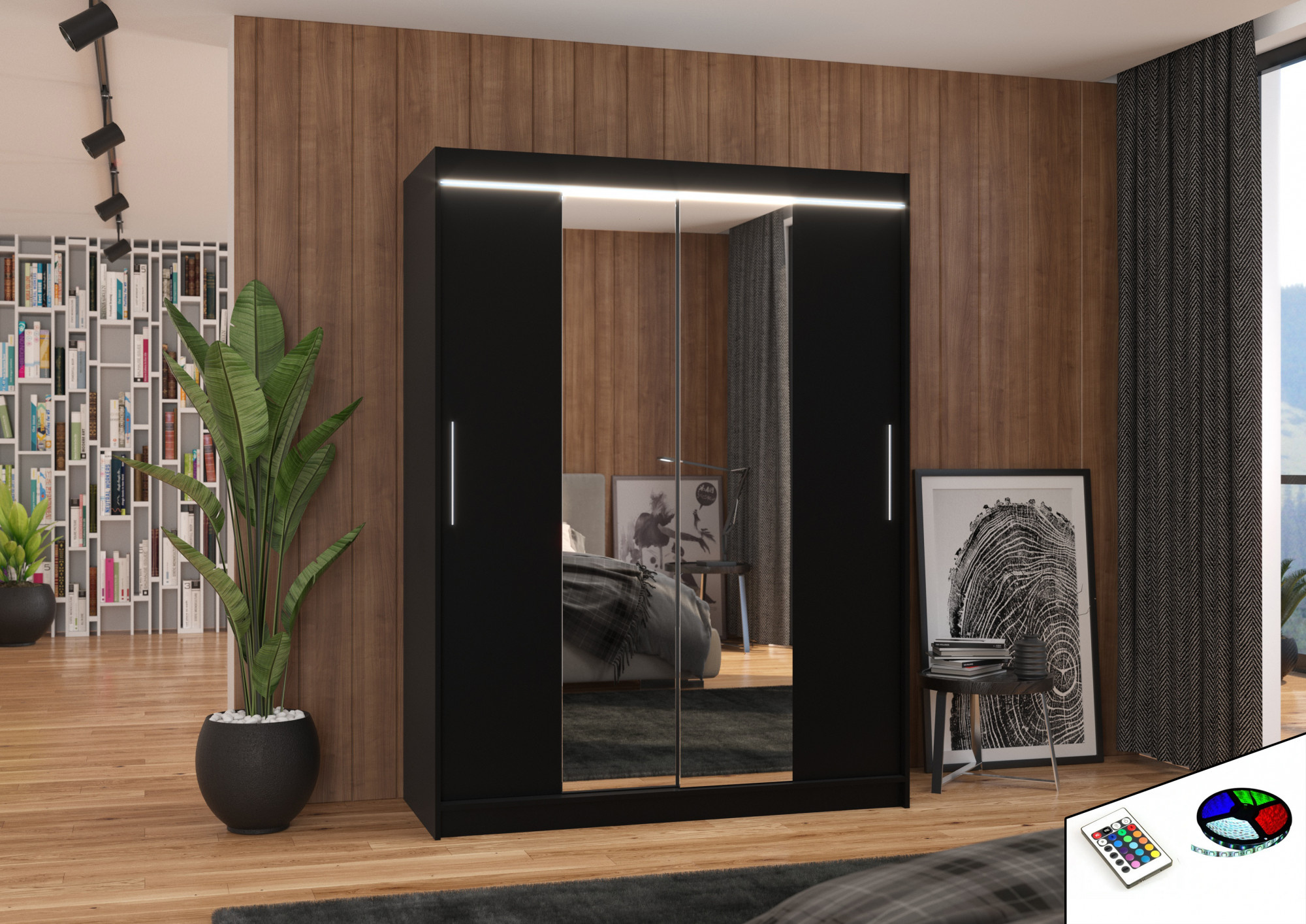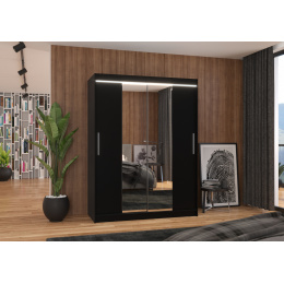 Posuvná skriňa so zrkadlom a LED osvetlením INESS 150 Čierna+Čierna