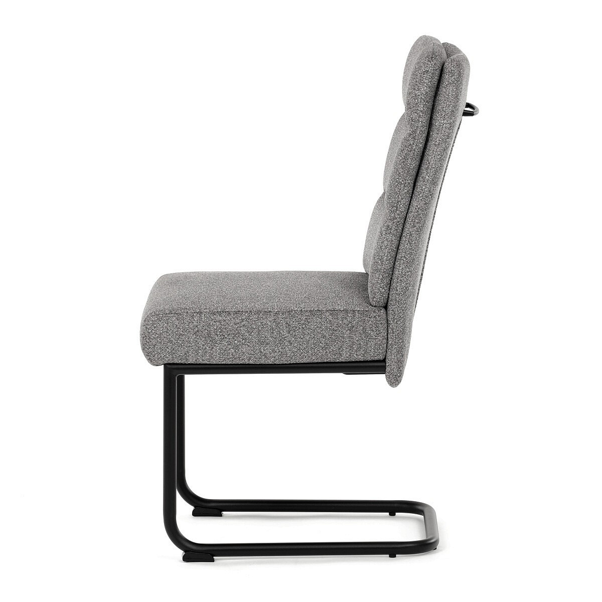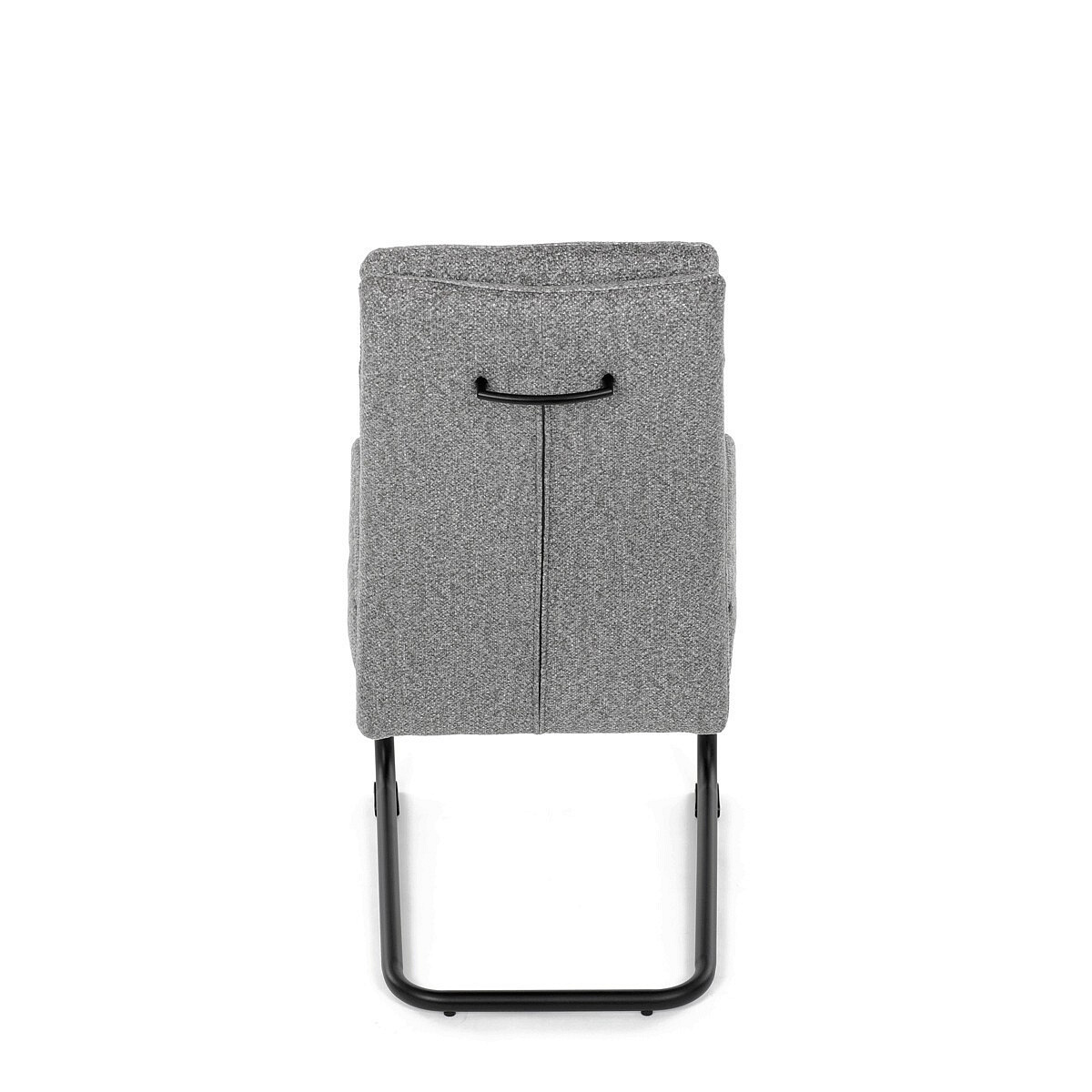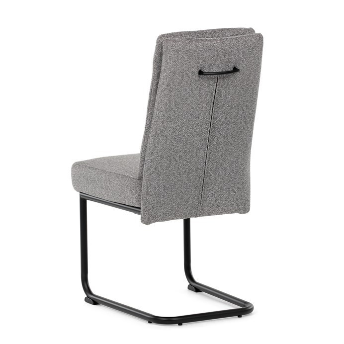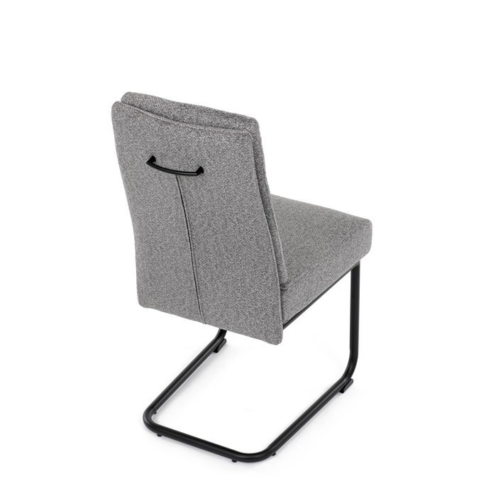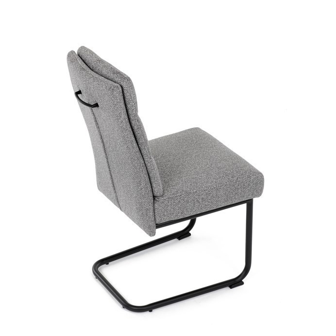 Jedálenská stolička, taštičkové pružiny v sedadle, madlo na operadle, svetlosivá látka, čierny kov