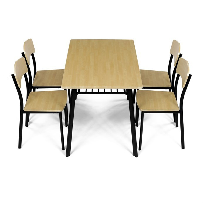 Jedálenský set (1+4), MDF dekor dub, štvornohá kovová podnož, čierny matný lak