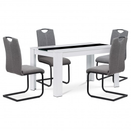 Jedálenský set 1+4, stôl 138x80 cm, biela MDF, stoličky sivá látka, čierny lak