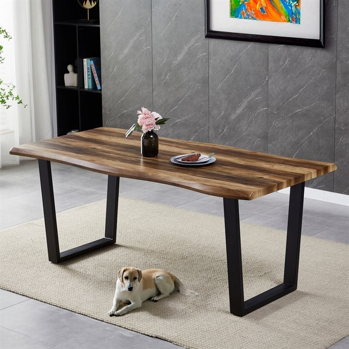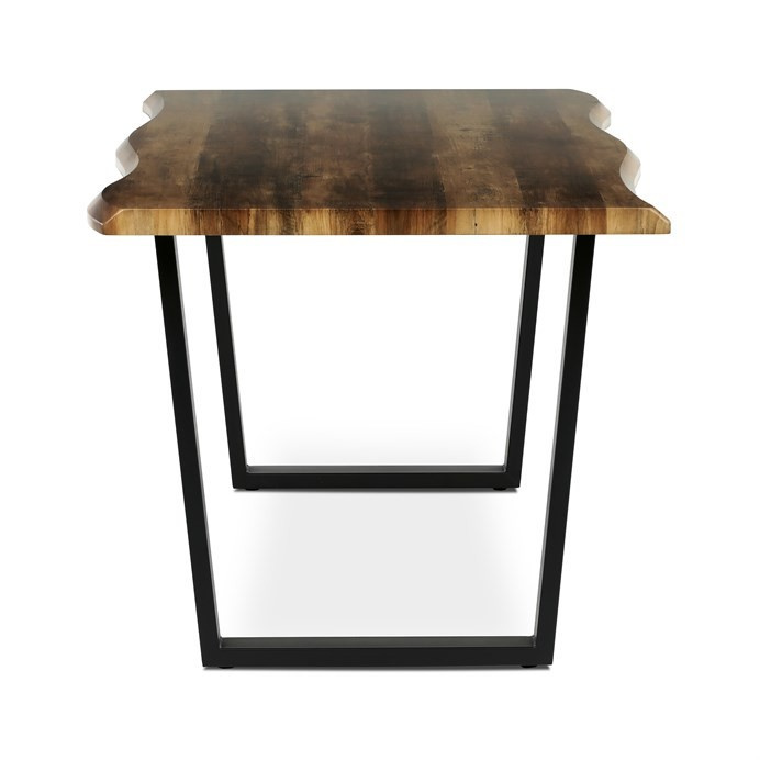 Jedálenský stôl značky Autronic v industriálnom štýle prinesie do vašej jedálne výrazný dizajnový prvok. Doska stola v dekore starého dreva ponúka atraktívnu štruktúru a odolnosť vďaka kvalitnej MDF. Pôsobivý vzhľad je podčiarknutý čiernymi kovovými nohami, ktoré poskytujú stabilitu a vytvárajú moderný kontrast k odtieňu starého dreva dosky. Atypický tvar dosky dodáva stolu originalitu, zatiaľ čo jeho pevná konštrukcia zaisťuje dlhú životnosť. Tento stôl je ideálny pre milovníkov dizajnu, ktorí hľadajú spojenie funkčnosti a štýlu.