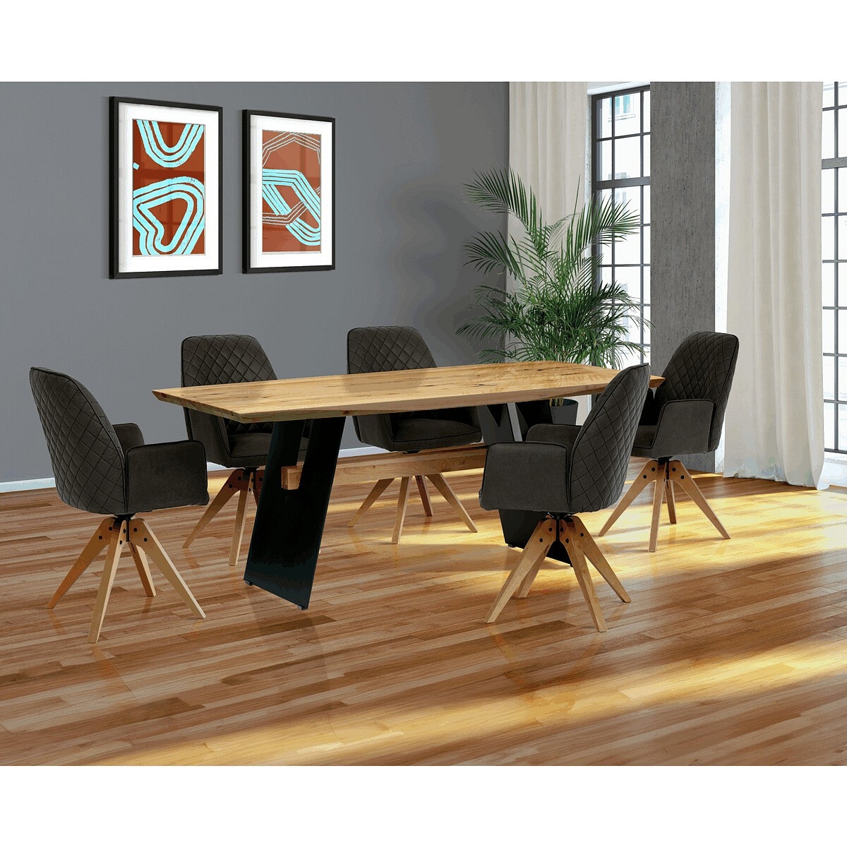 Zažite kombináciu funkčnosti a luxusu vo svojom jedálenskom priestore s jedálenským stolom Autronic. Tento jedálenský stôl z masívneho dreva s bohatou prírodnou farbou a autentickým dekorom dubovej dosky prináša industriálny dojem, ktorý doplní moderné aj tradičné interiéry. Čierne kovové nohy zvýrazňujú teplú textúru dreva a vytvárajú príjemnú atmosféru, ktorá nikdy nesklame. Stôl s obdĺžnikovým dizajnom hornej dosky je vyrobený z masívneho dreva, čo zaručuje odolnosť a dlhodobú pevnosť. Tento kúsok, ktorý vyniká svojou robustnou hornou časťou, je príkladom dokonalého remeselného spracovania v kombinácii s dizajnom. Nie je to len kus nábytku, ale základný prvok pre dlhotrvajúce nezabudnuteľné rodinné stretnutia alebo zapôsobenie na obchodných partnerov počas rokovaní. Jedálenský stôl Autronic rezonuje svojou výnimočnou jednoduchosťou používania a jedinečným štýlovým duom kovu a dreva. Podopierajú ho dve kovové nohy, ktoré zabezpečujú stabilitu a zároveň pôsobia industriálnym dojmom. Nechajte svoju jedáleň alebo rokovaciu miestnosť nanovo definovať silou, eleganciou a sofistikovanosťou, ktorú ponúka.