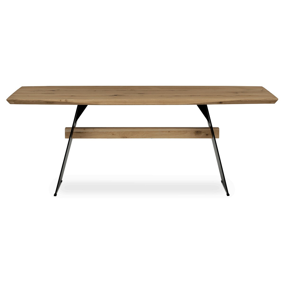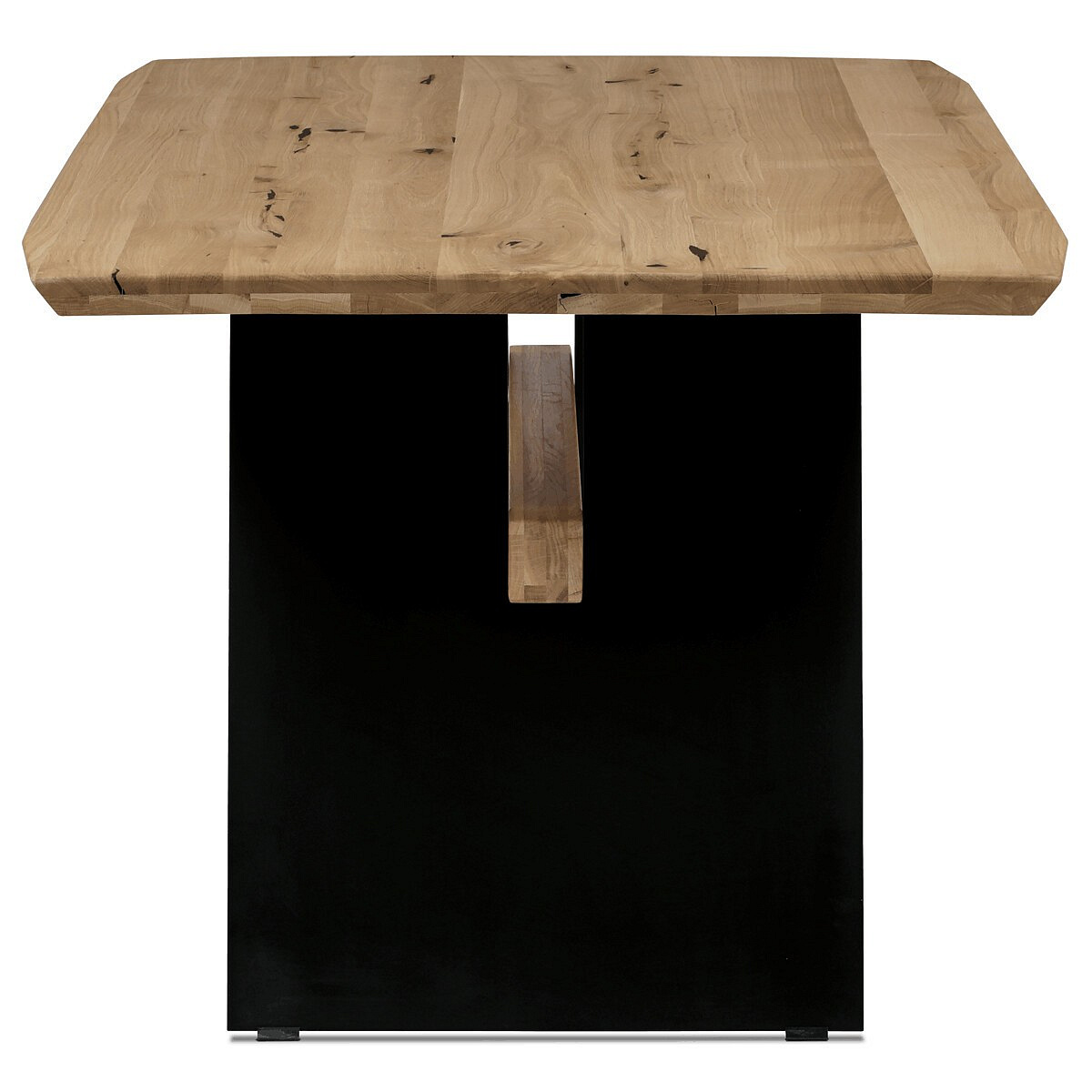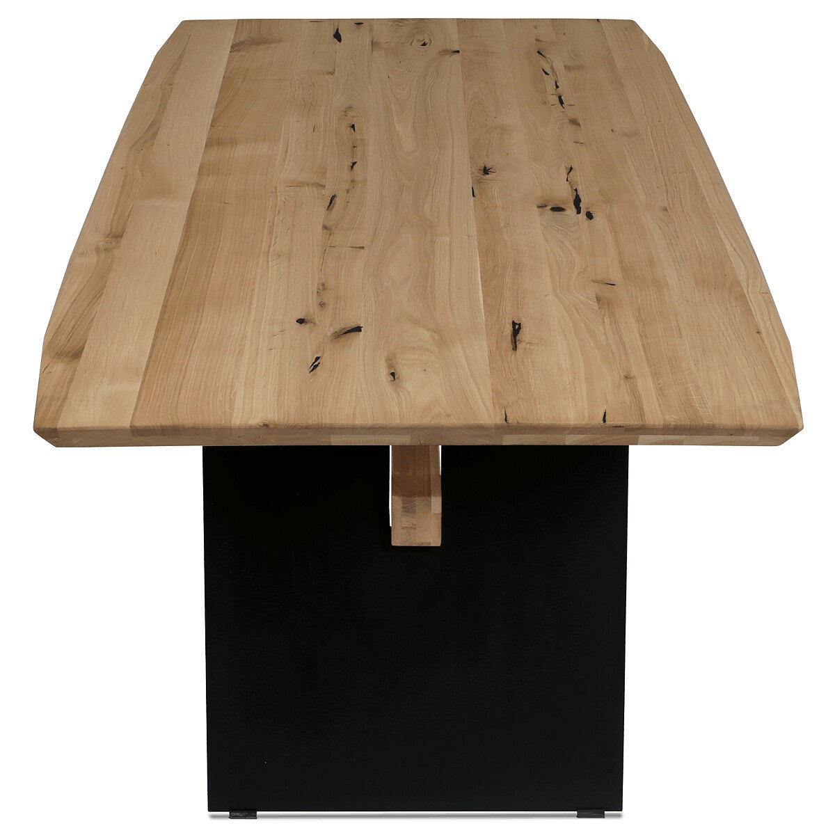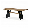 Jedálenský stôl, 200x100 cm, dubový masív, skosené hrany, kovová noha, čierny lak