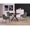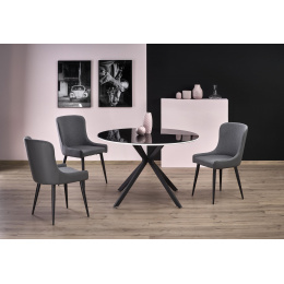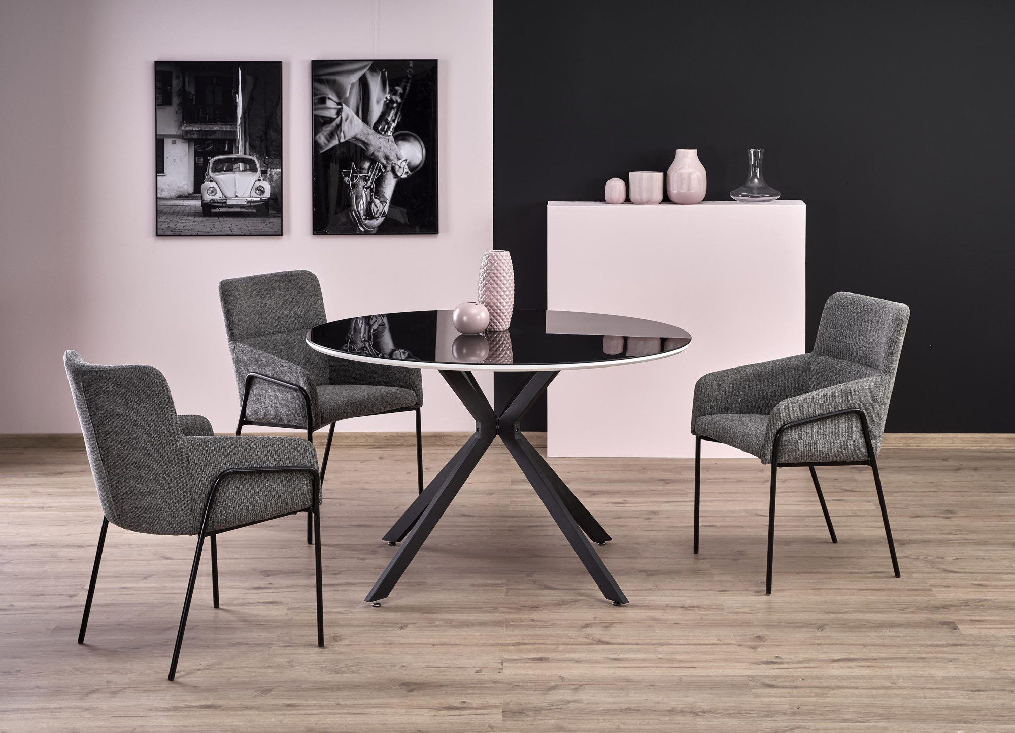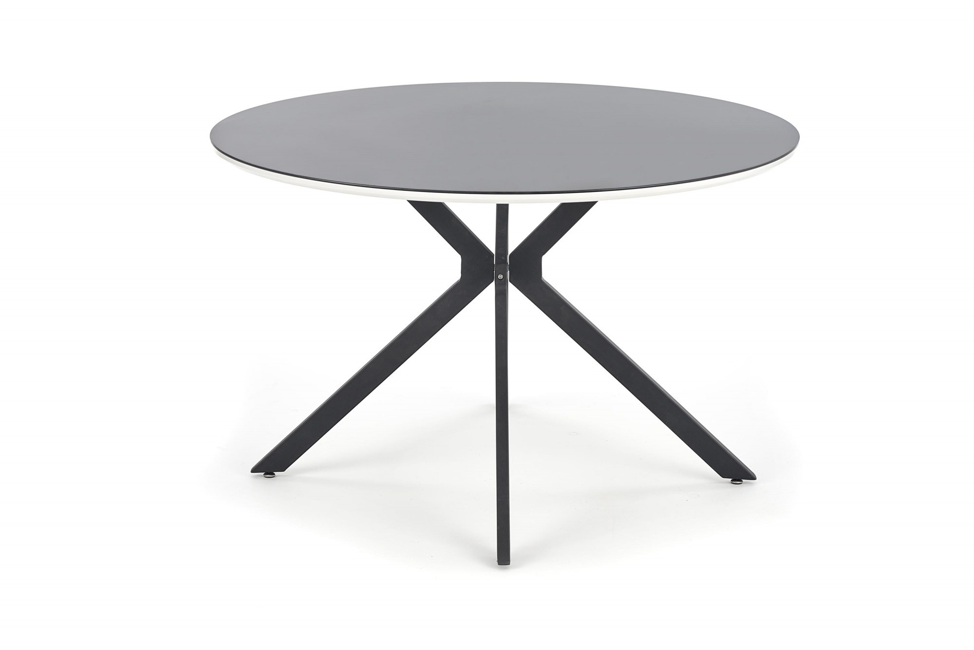rozmery: fi120/76 cm, materiál: sklo / lakovaná MDF / prášková oceľ, farba: stolová doska - čierna / biela, nohy - čierne