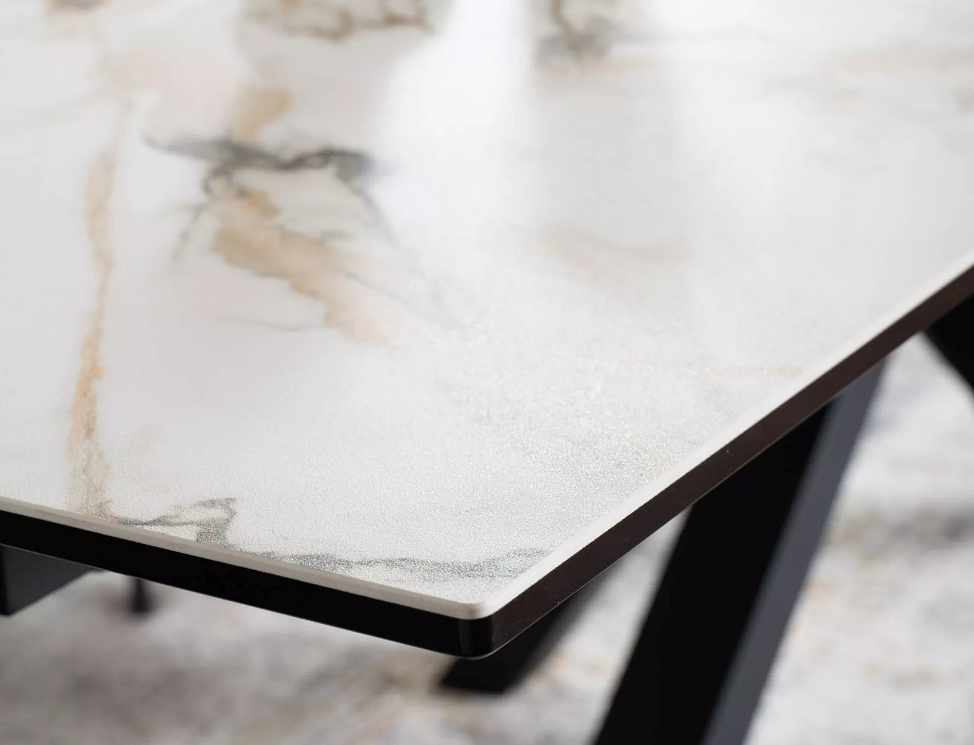 Jedálenský stôl COLUMBUS CERAMIC, Amber Bianco/Biely mat/Čierny mat