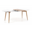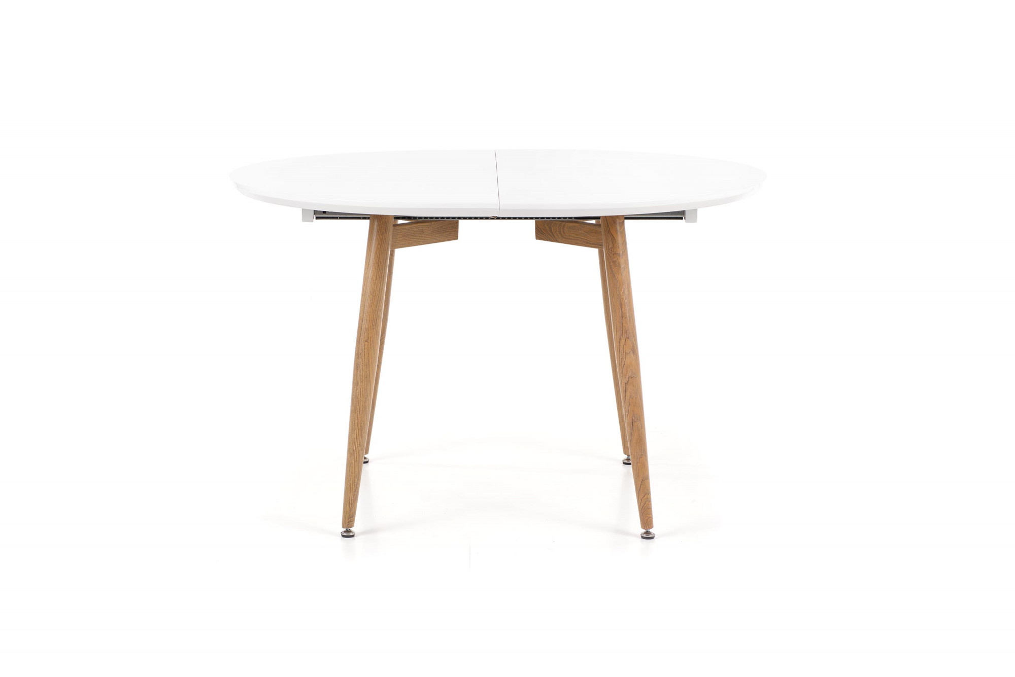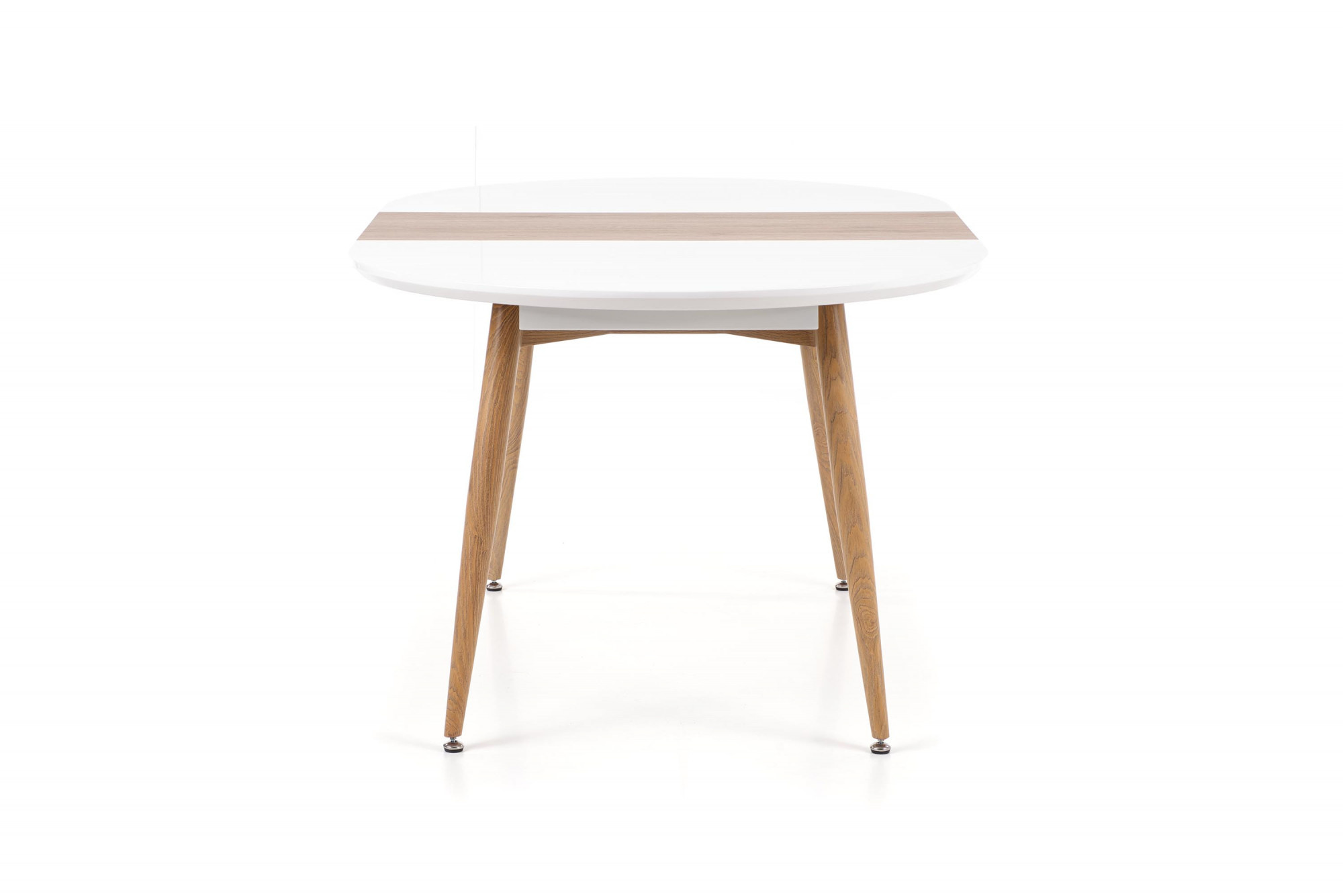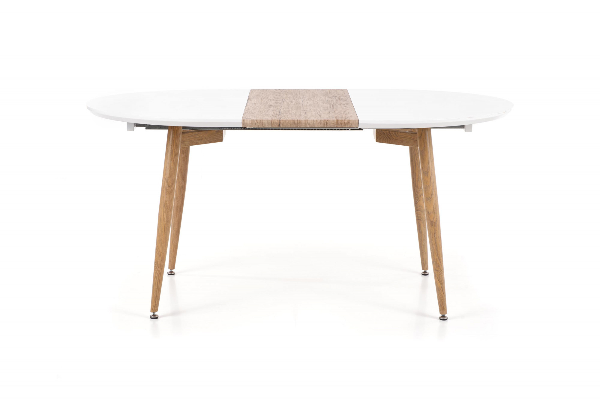 rozkladací stôl, rozmery: 120-200/100/75 cm, materiál: lakovaná MDF / laminovaná MDF / lakovaná oceľ, farba: biela / dub san remo, nohy - dub san remo