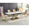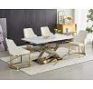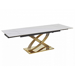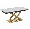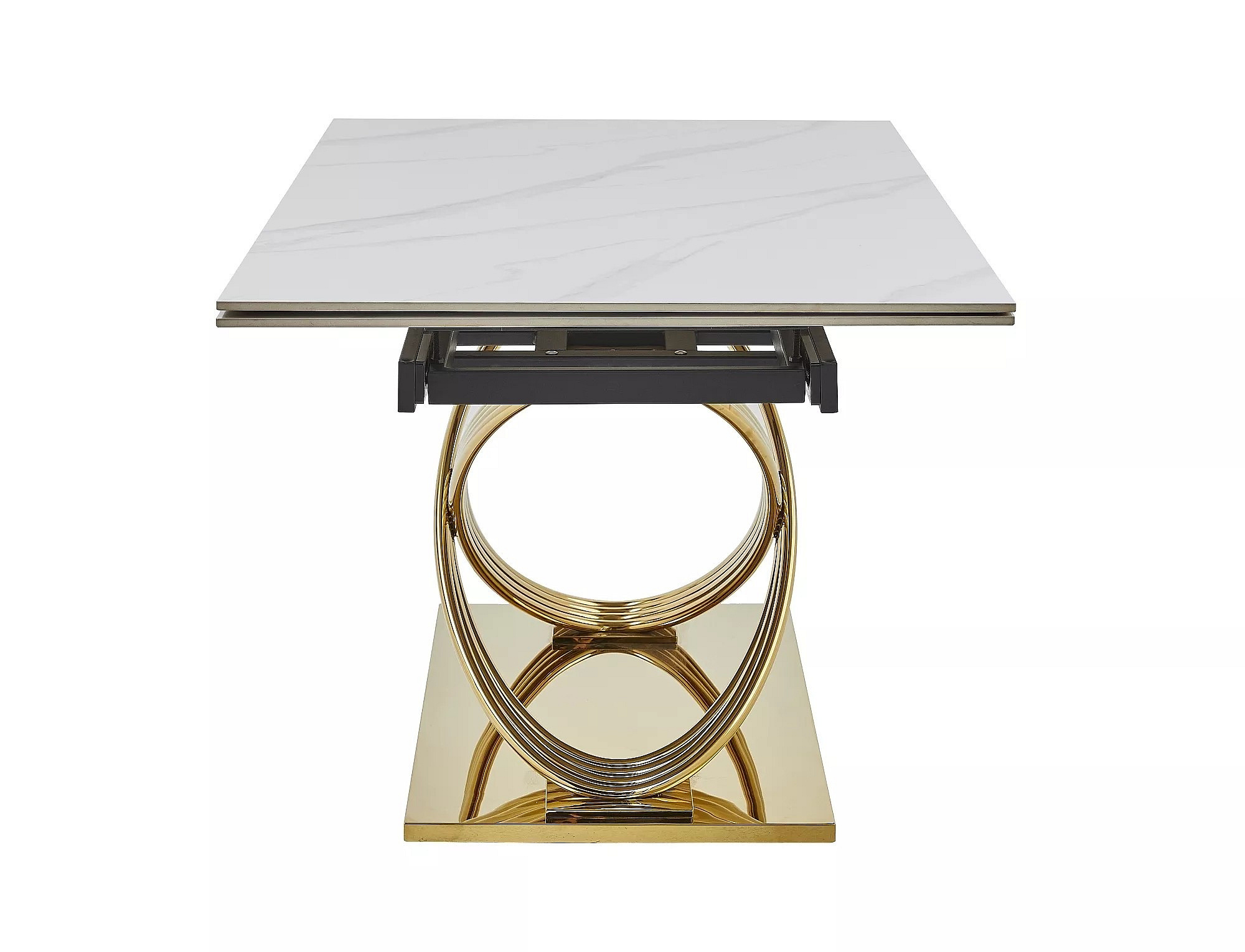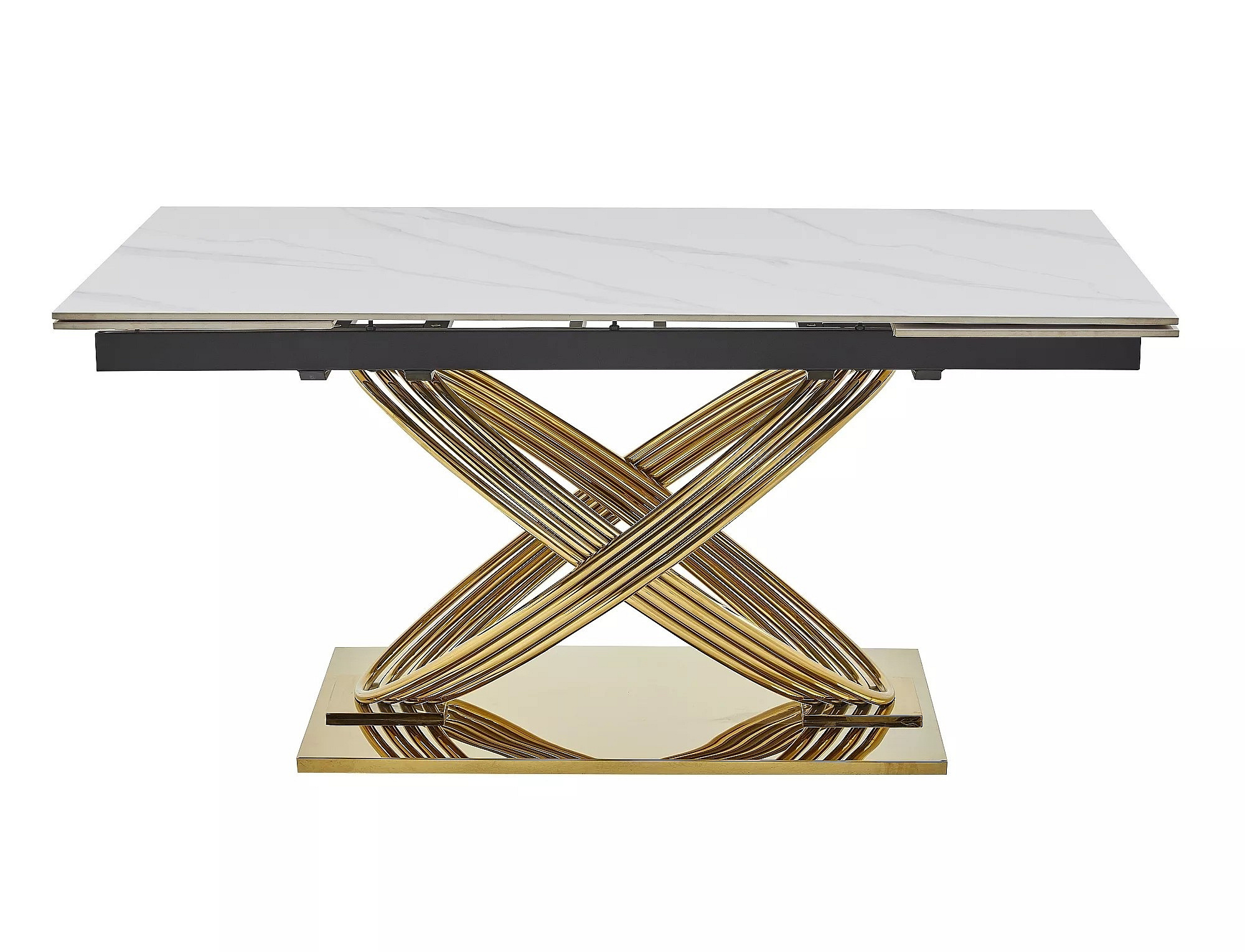 Jedálenský stôl HERMES II 160(240)x90cm, Efekt bieleho mramoru/Zlatá