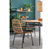 rozmery: 160/90/77 cm, materiál: mdf dýha / umelý ratan / prášková oceľ, farba: stolová doska - zlatý dub, nohy - čierne