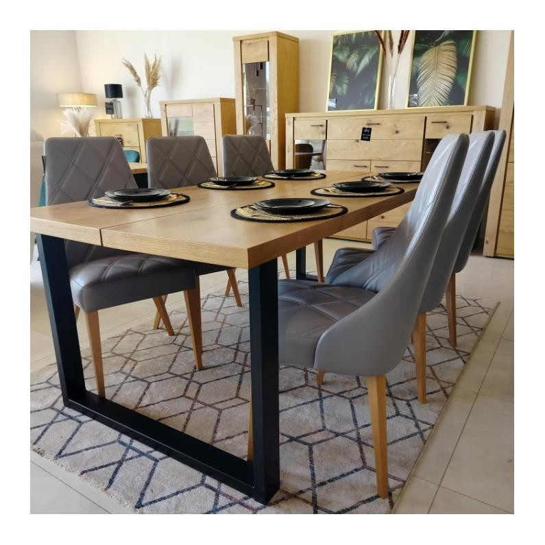 Jednoduchá a nadčasová forma stola Matin zaisťuje, že sa tento stôl hodí do každého interiéru na dlhé roky, poskytujúc pohodlné používanie. Ďalší charakter mu dodávajú čierne kovové nohy. \n \n \n \nŠpecifikácia: \n \n-Doska vyrobená z prírodnej dubovej dyhy, \n-Kovové nohy.