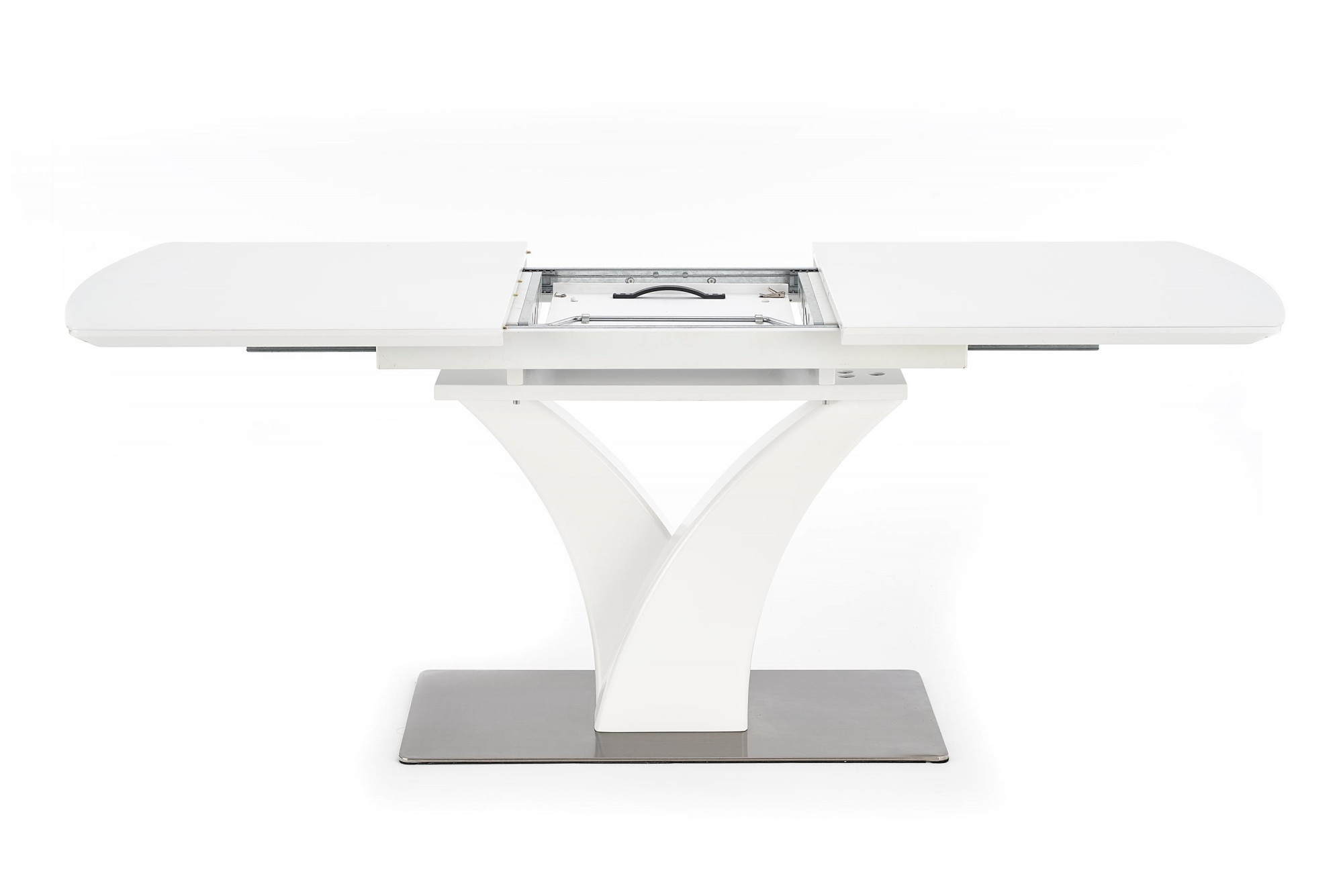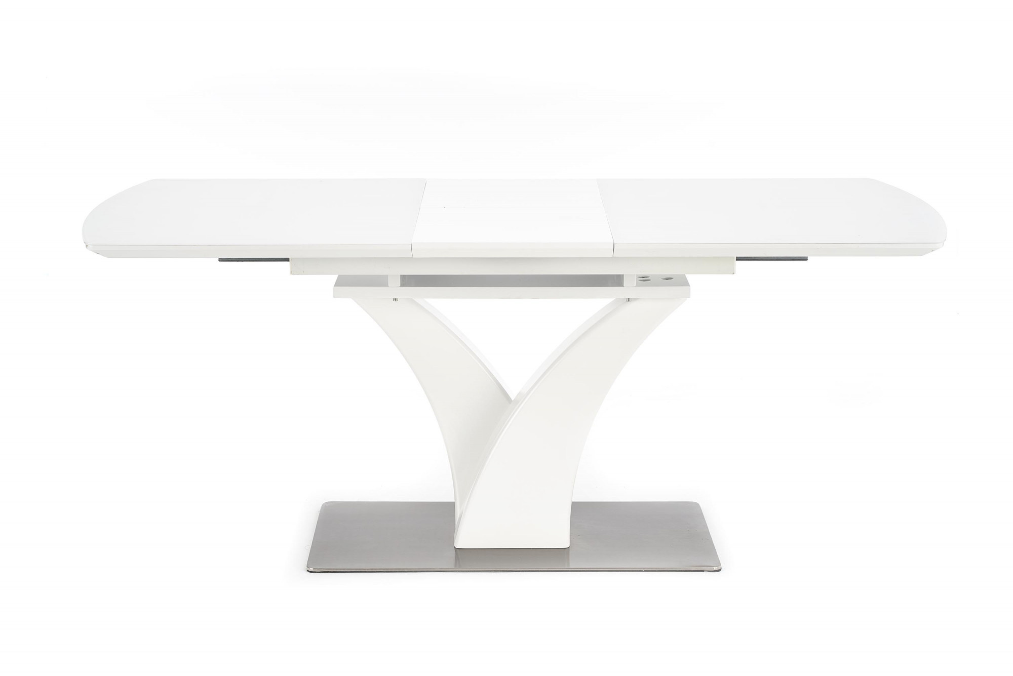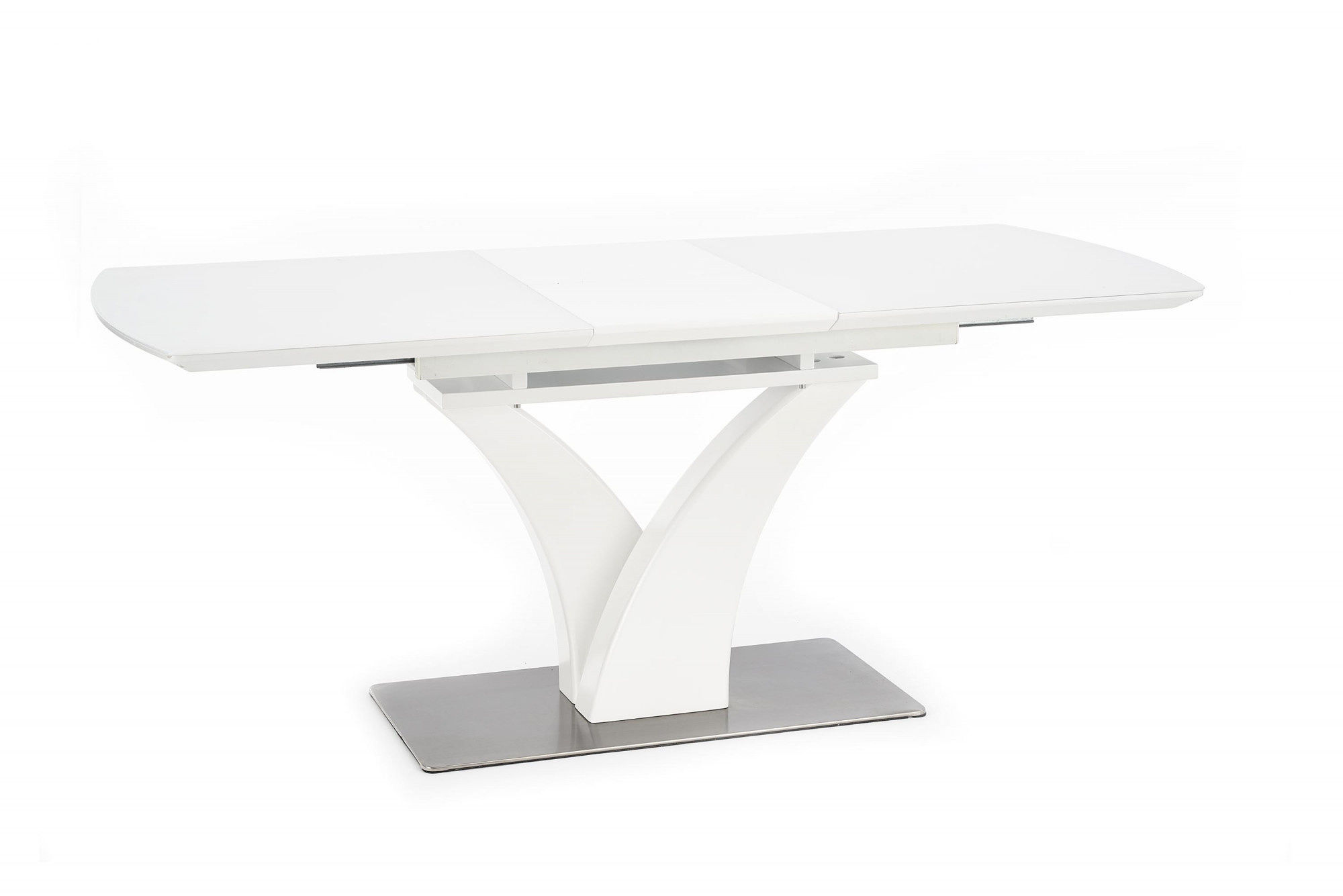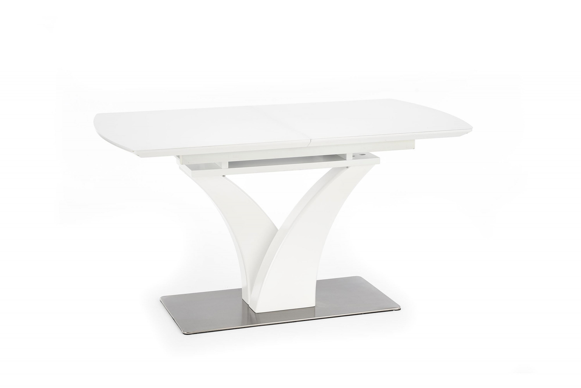 rozmery: 140÷180/80/75 cm, rozkladací stôl, materiál: sklo / lakovaná MDF / nerezová oceľ, farba: matná biela