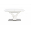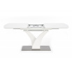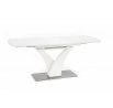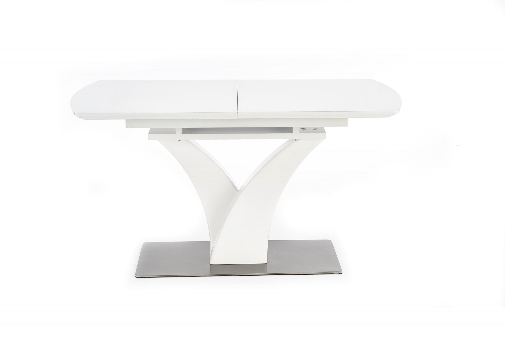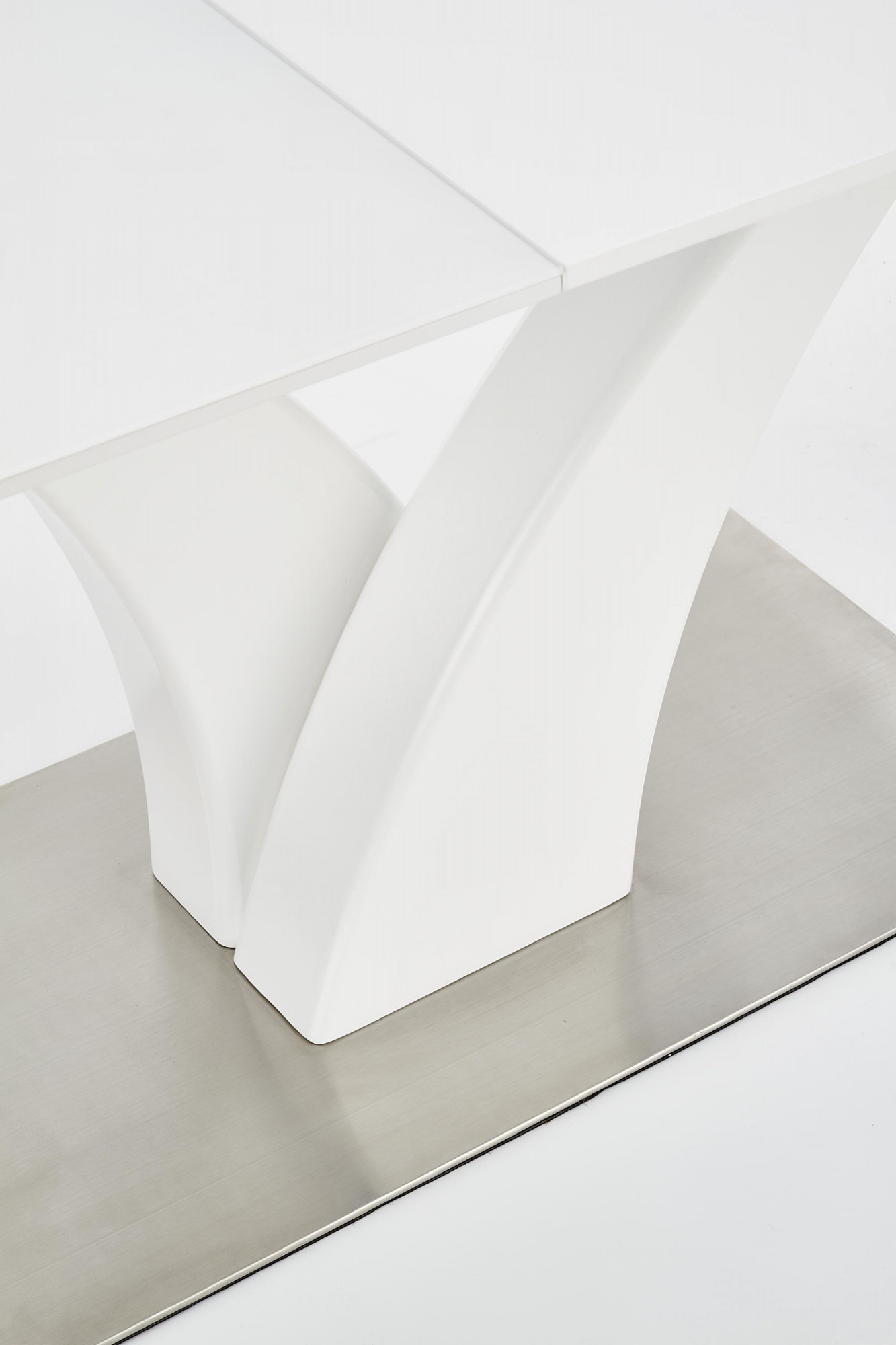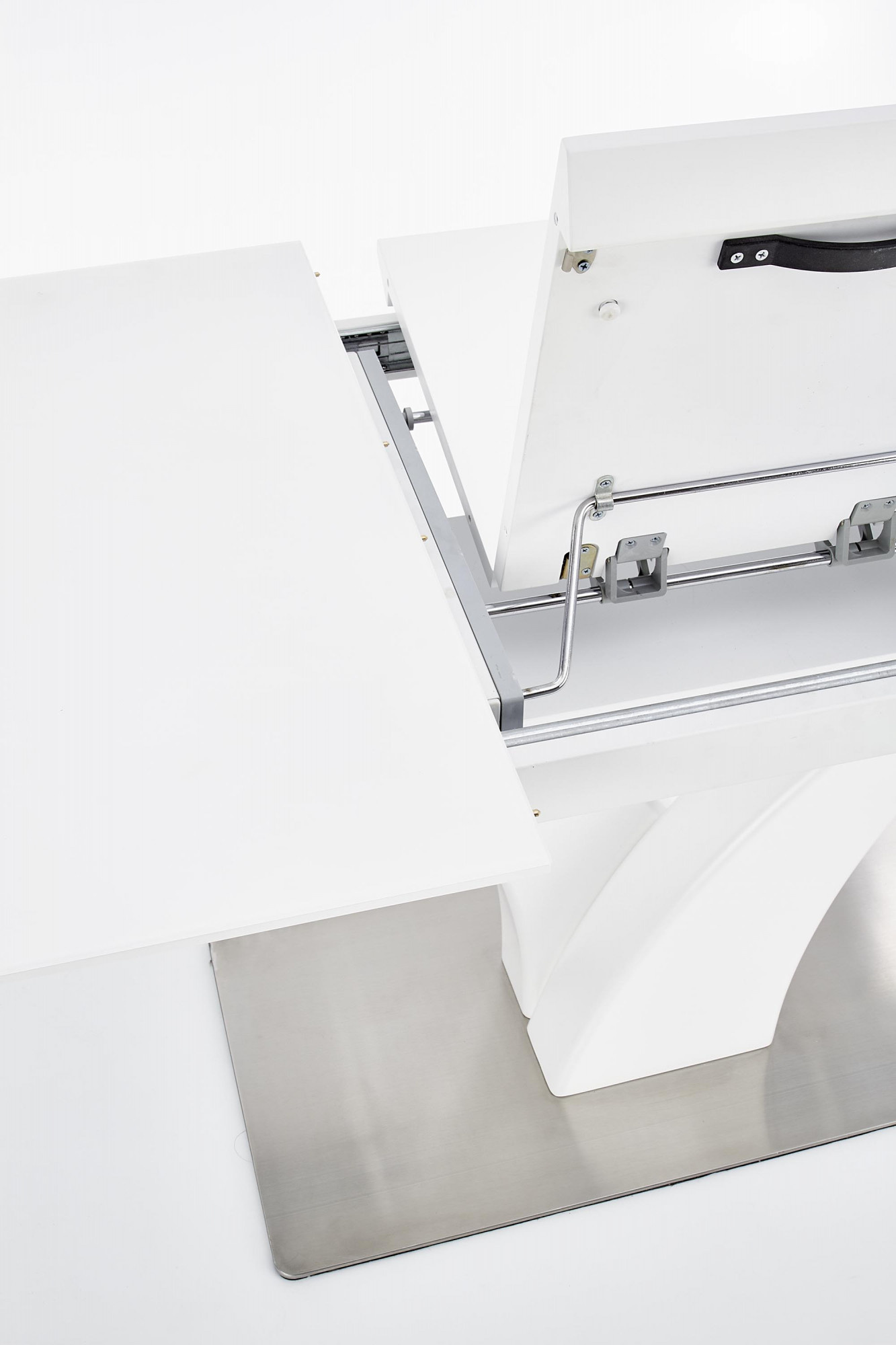 rozmery: 140÷180/80/75 cm, rozkladací stôl, materiál: sklo / lakovaná MDF / nerezová oceľ, farba: matná biela