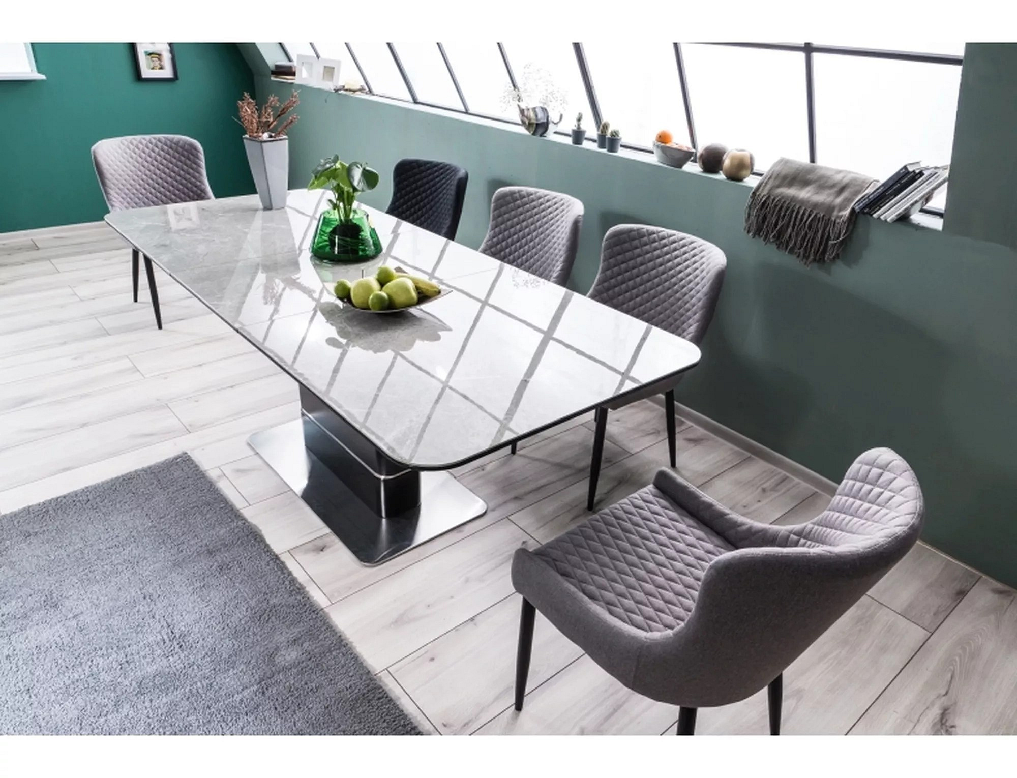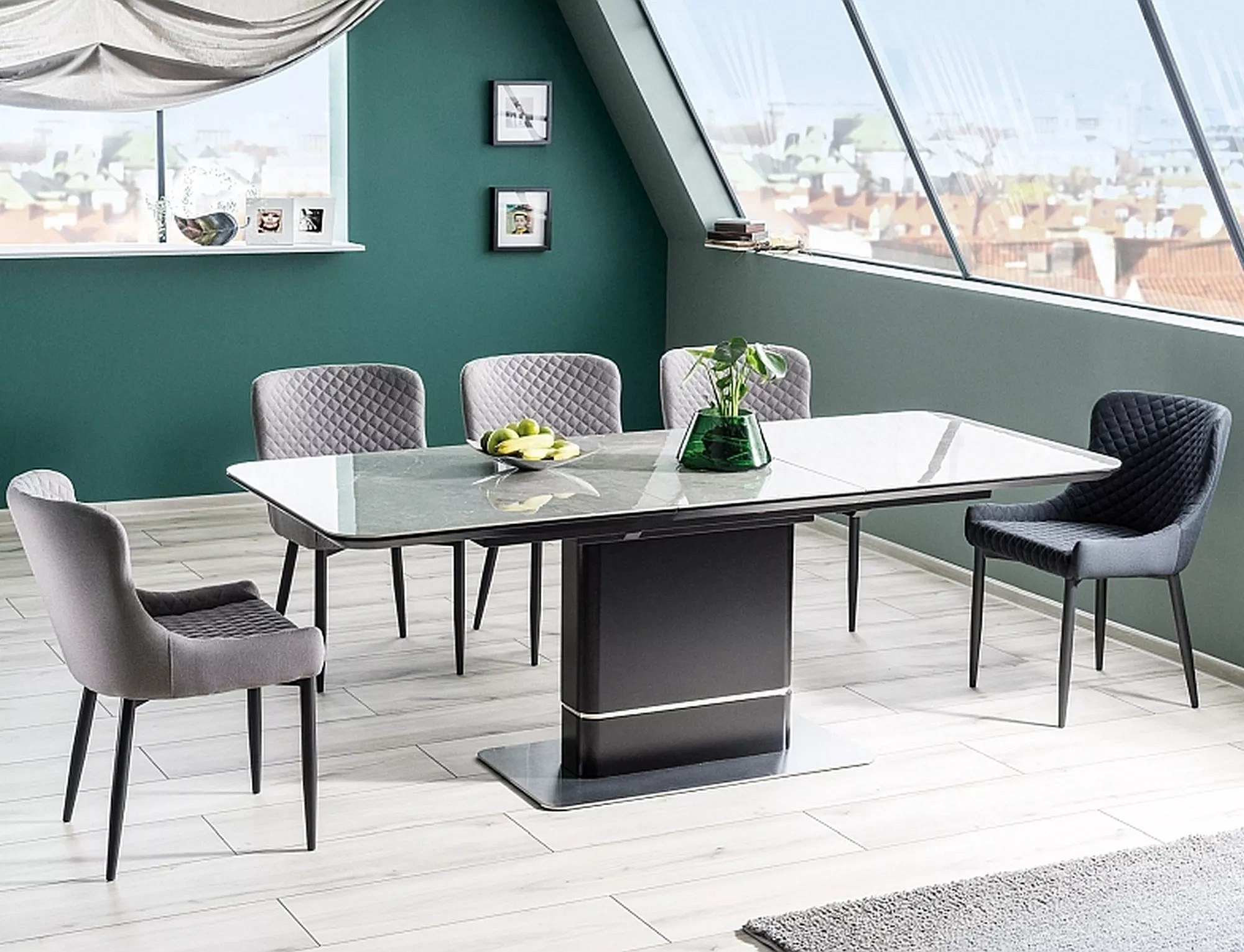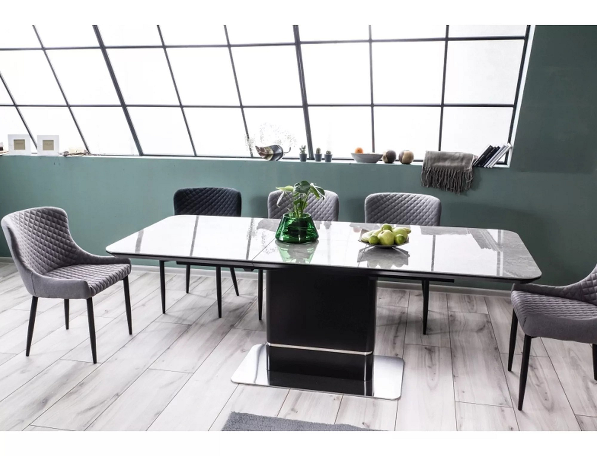 Jedálenský stôl PALLAS CERAMIC, sivý efekt mramoru/čierny matný
