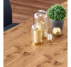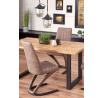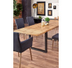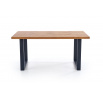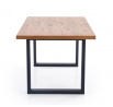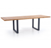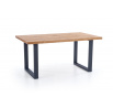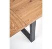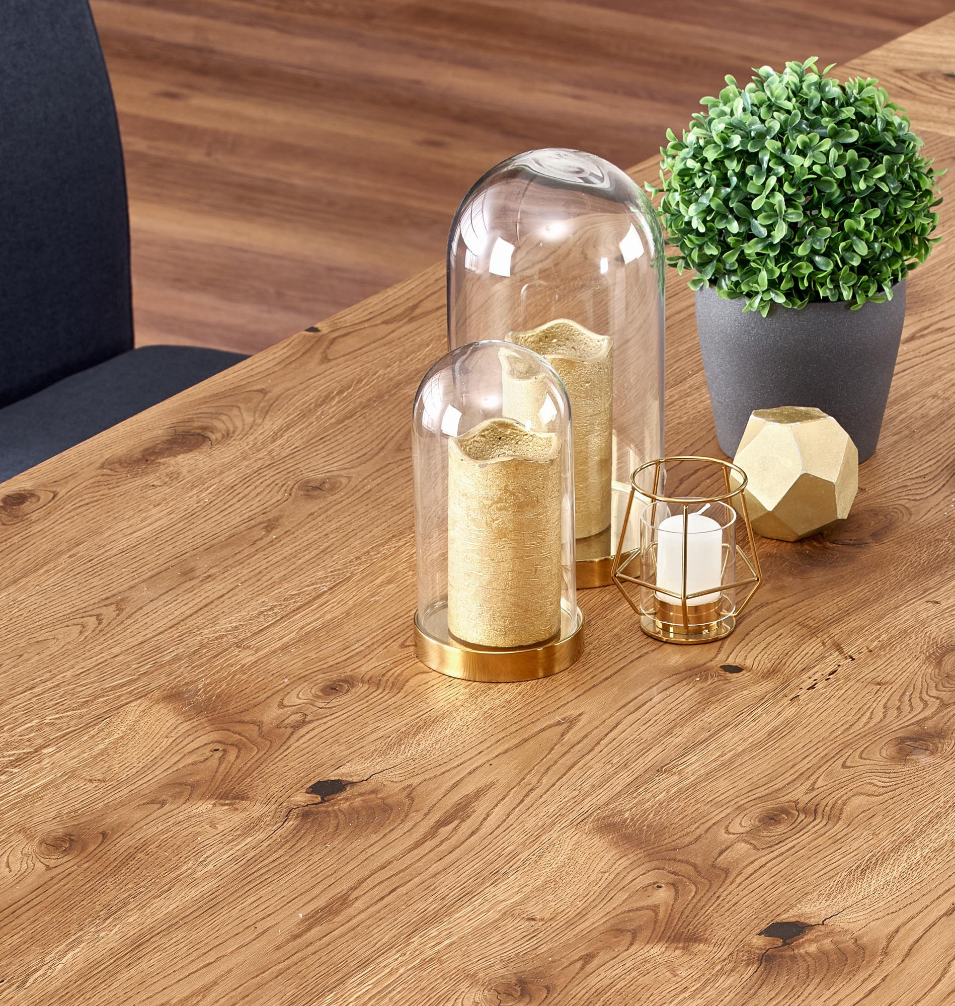 rozkladací stôl, rozmery: 160÷250/90/76 cm, materiál: vrchná doska - dyhovaná doska, hrany z masívneho dreva, nohy - práškovaná oceľ, farba: vrchná doska - svetlý dub, nohy - čierna