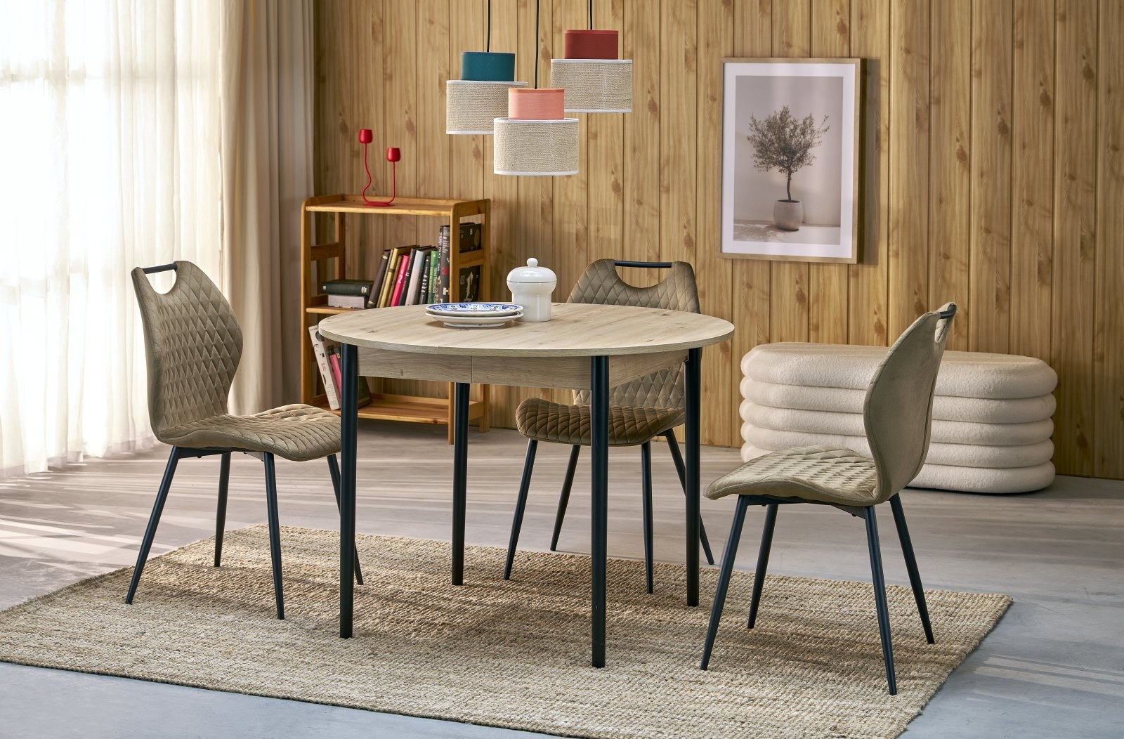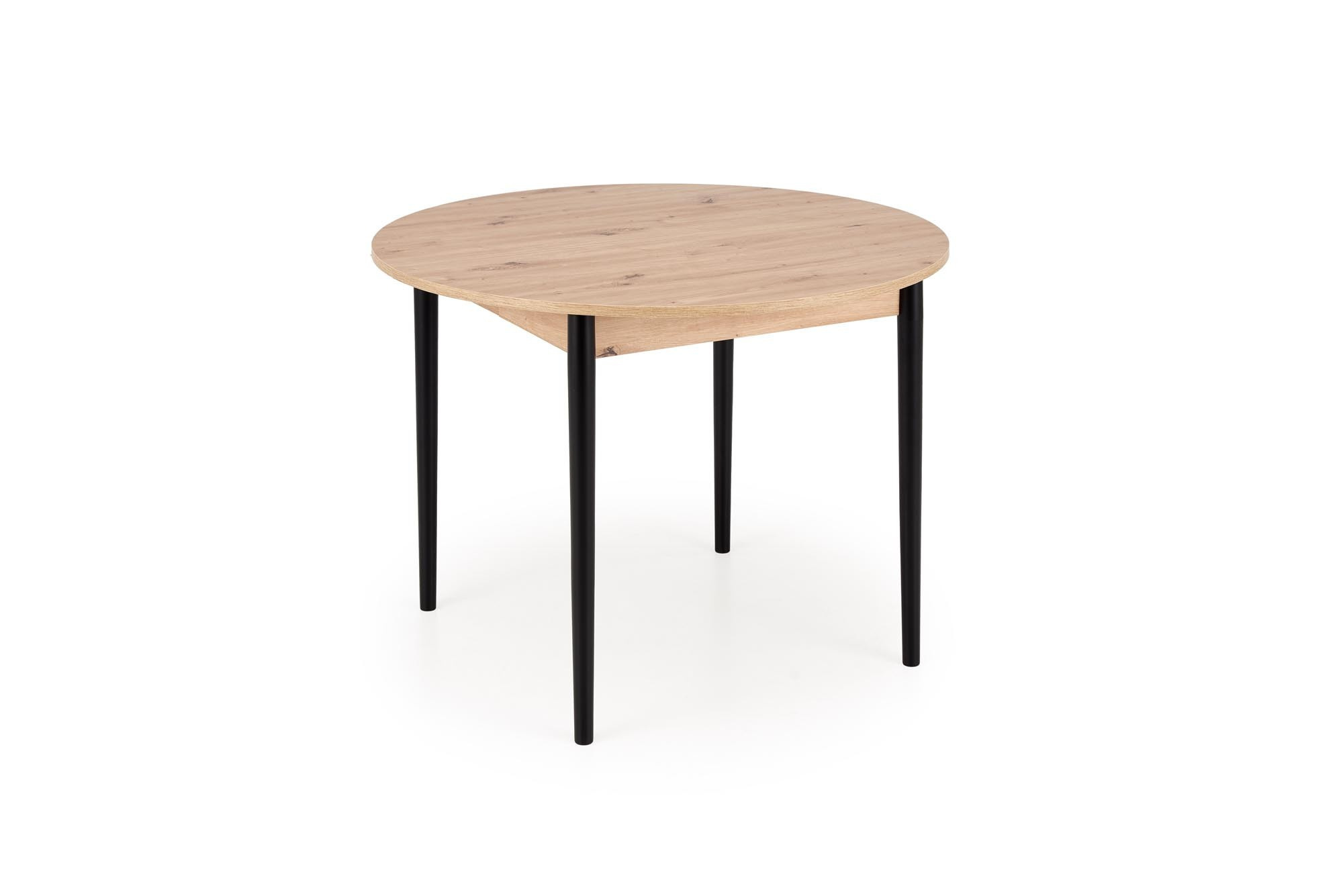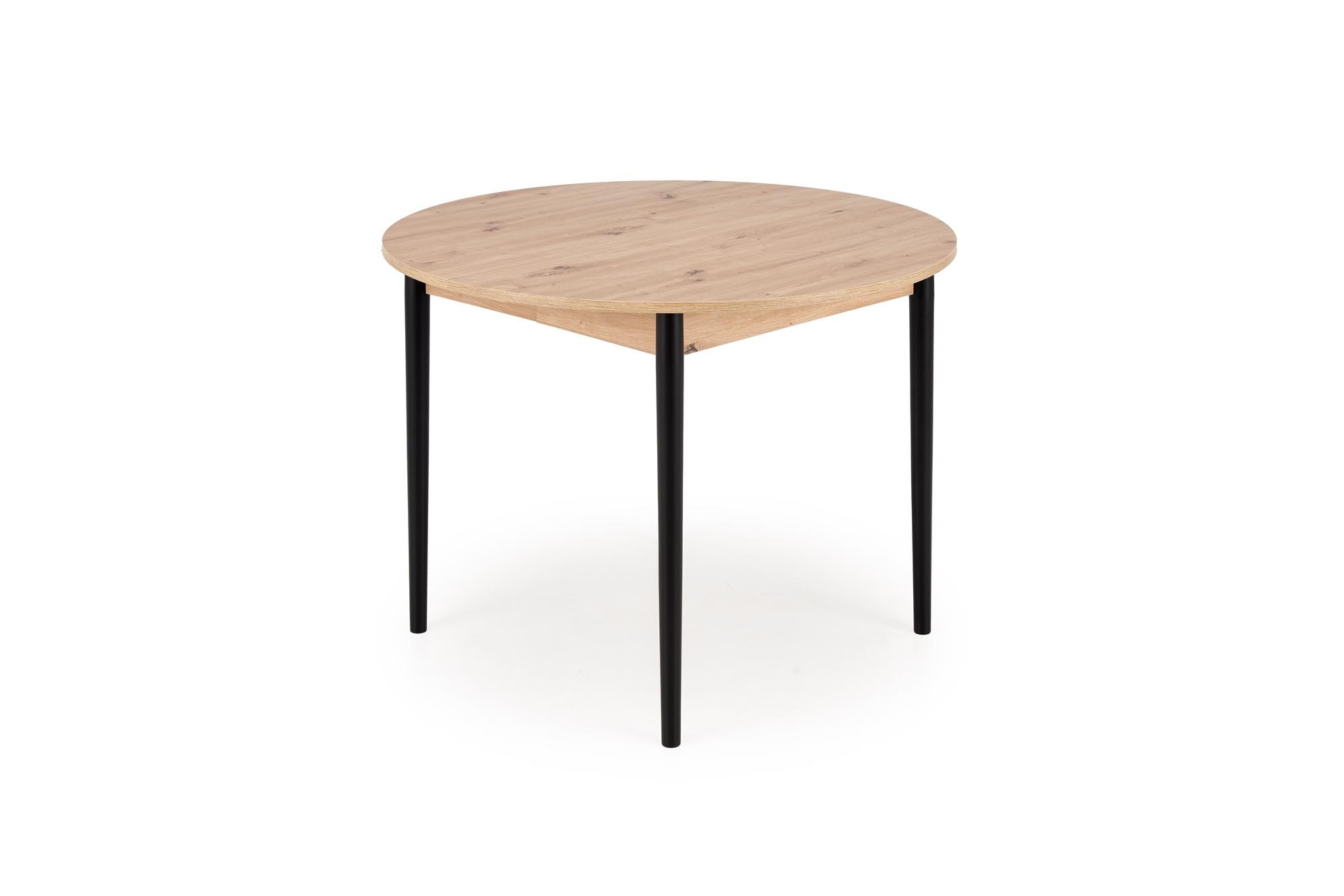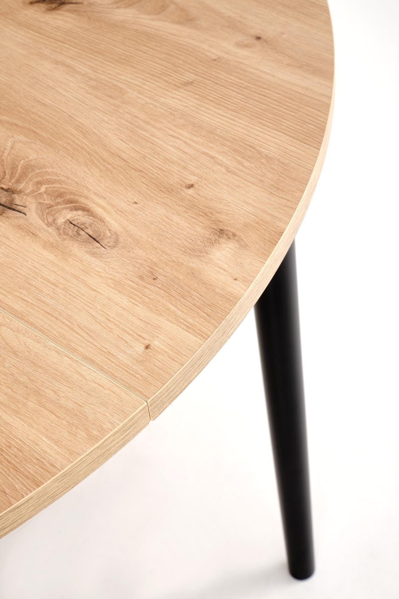 rozkladací stôl, rozmery: 102-142/102/75 cm, materiál: laminovaná nábytková doska / masívne drevo - bukové, farba: doska – dub artisan, nohy - čierne