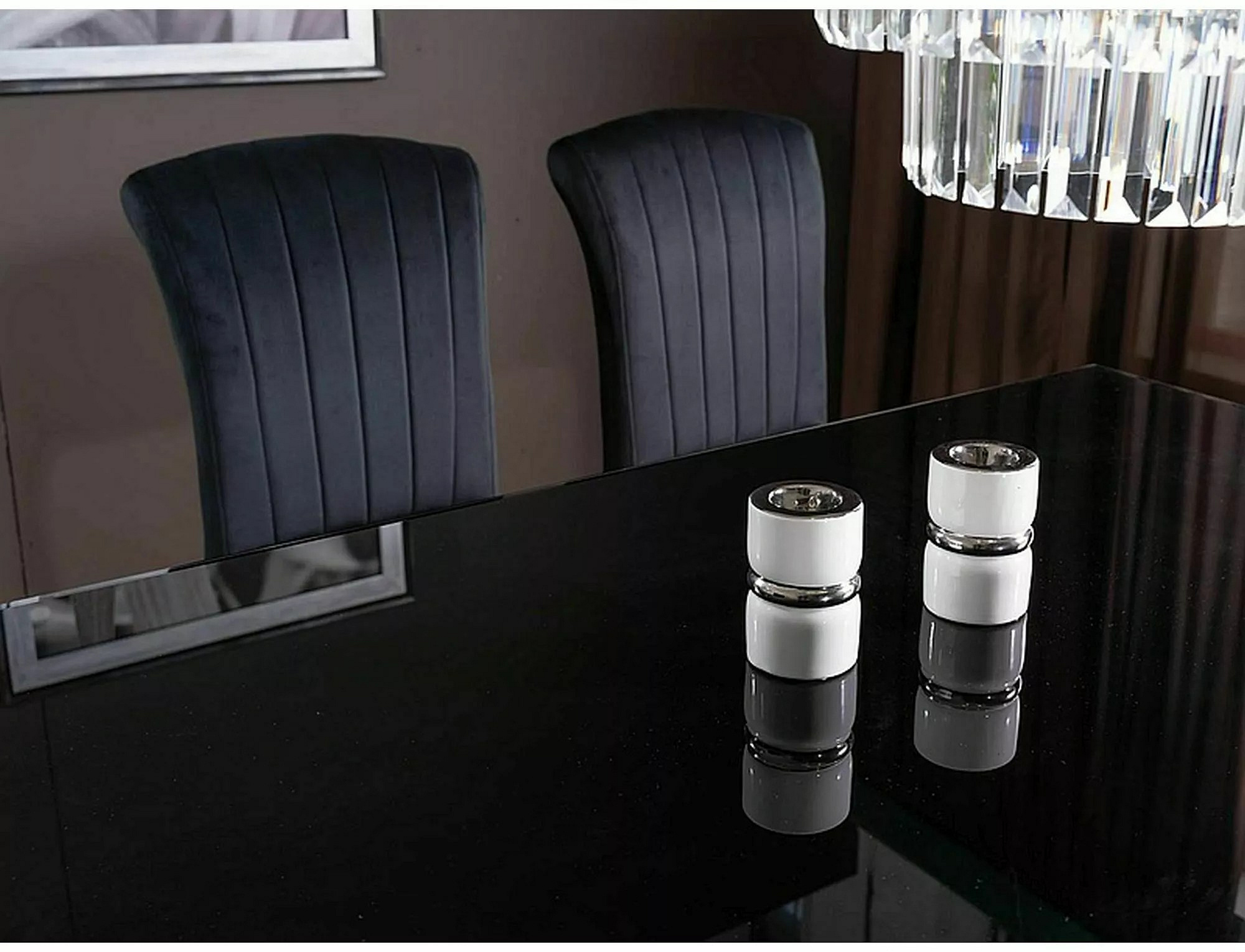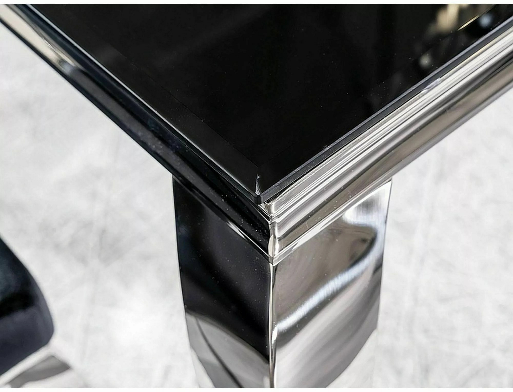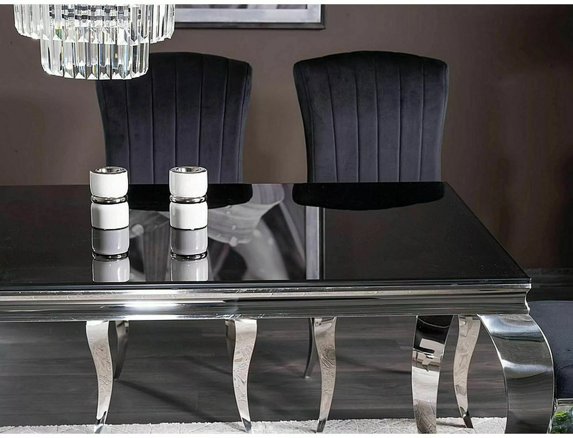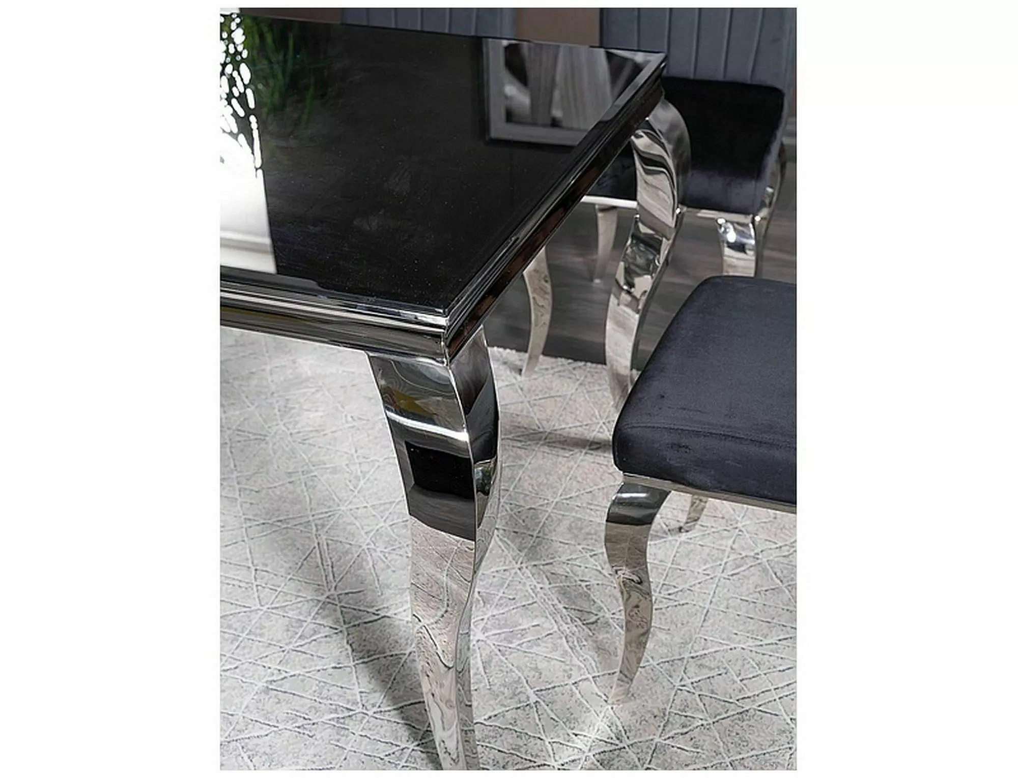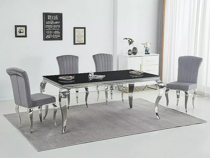Jedálenský stôl PRINC je navrhnutý s dôrazom na modernú estetiku. Čierna doska z tvrdeného skla dodáva stolu sofistikovaný vzhľad, zatiaľ čo chrómované kovové nohy pridávajú na jeho elegancii. Táto kombinácia materiálov zabezpečuje, že stôl bude nielen krásny na pohľad, ale aj odolný a stabilný.