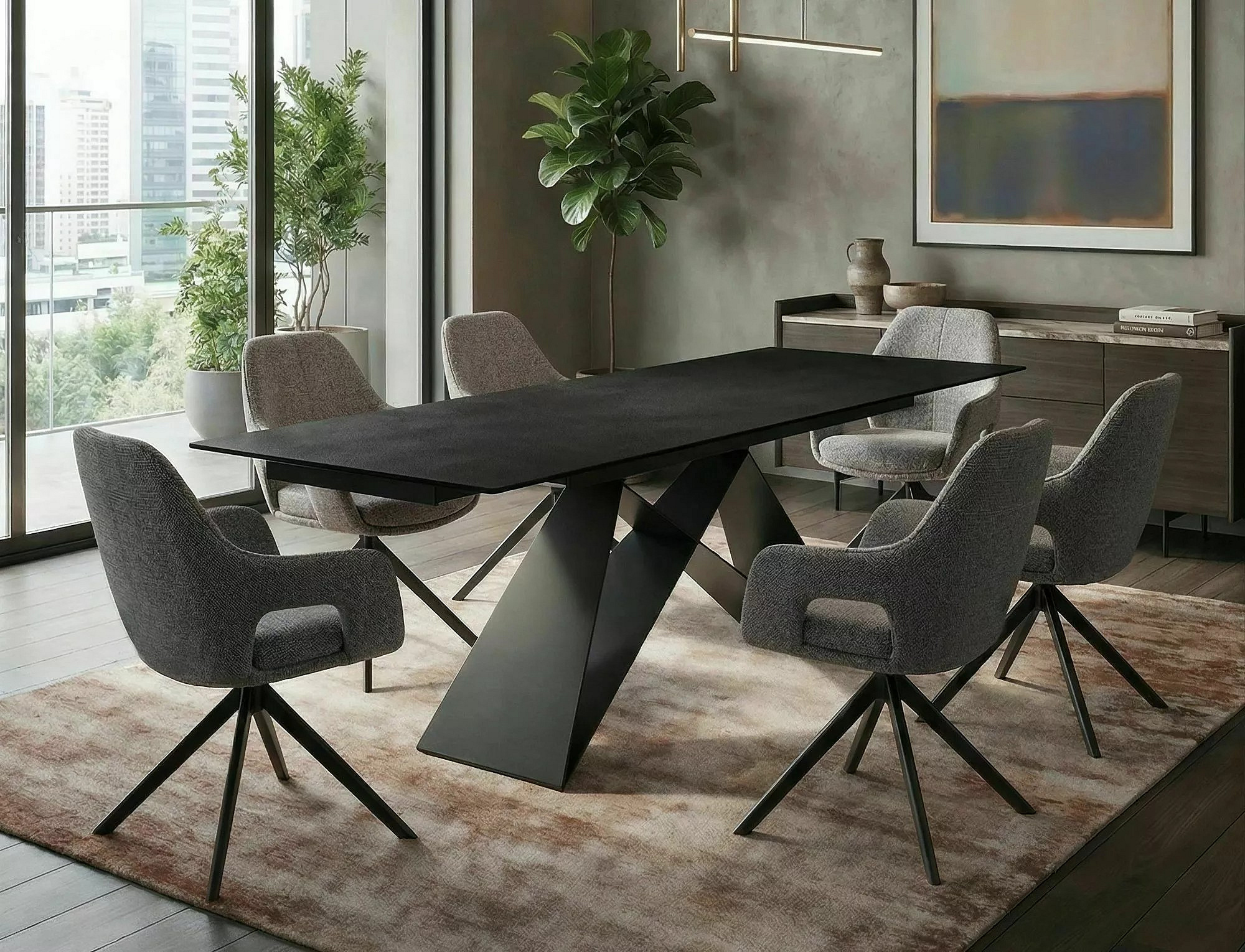 Jedálenský stôl WESTIN I, Čierny mat, je ideálnou voľbou pre tých, ktorí hľadajú spojenie kvality, funkčnosti a štýlu. Či už organizujete rodinnú večeru alebo slávnostnú hostinu, tento stôl vám poskytne potrebný priestor a komfort. Investujte do stola, ktorý nielenže splní vaše praktické potreby, ale tiež obohatí váš domov o estetický prvok.